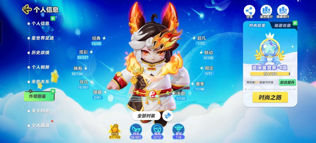 装备描述:2臻藏 15非凡 32稀有 33炫彩 15经典 1超凡 5联动 11赛季 7主题