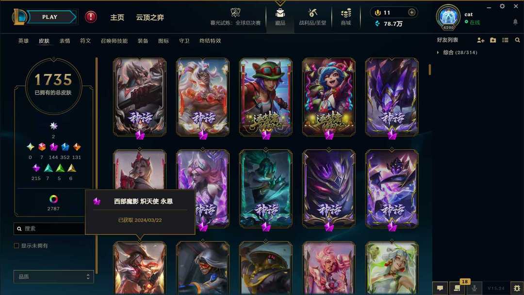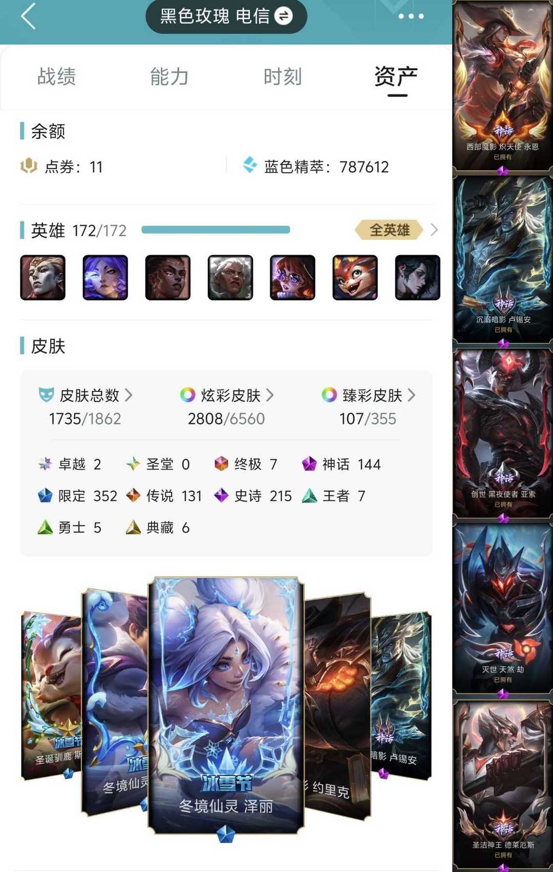 顶级1735原皮✌全冰雪节沉溺暗影✌机神诺手猴子✌熊猫拉克丝✌冠军臻彩名人堂✌3000炫彩✌全神话幻