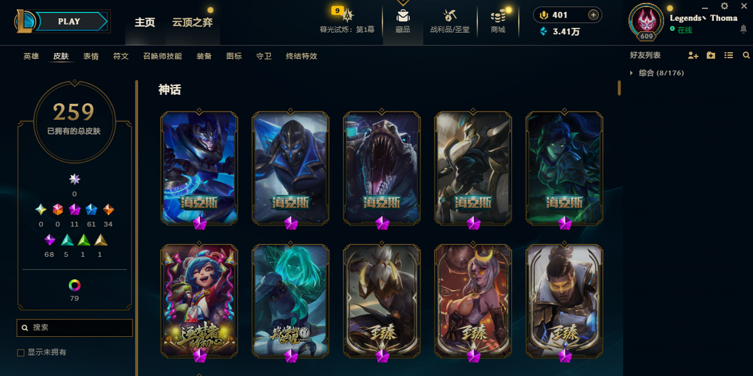 艾欧尼亚★钻石★可排位★摄魂使者薇恩★零之枪骑人马★海克斯皇子★灵魂莲华锤石★FPX*IG全套