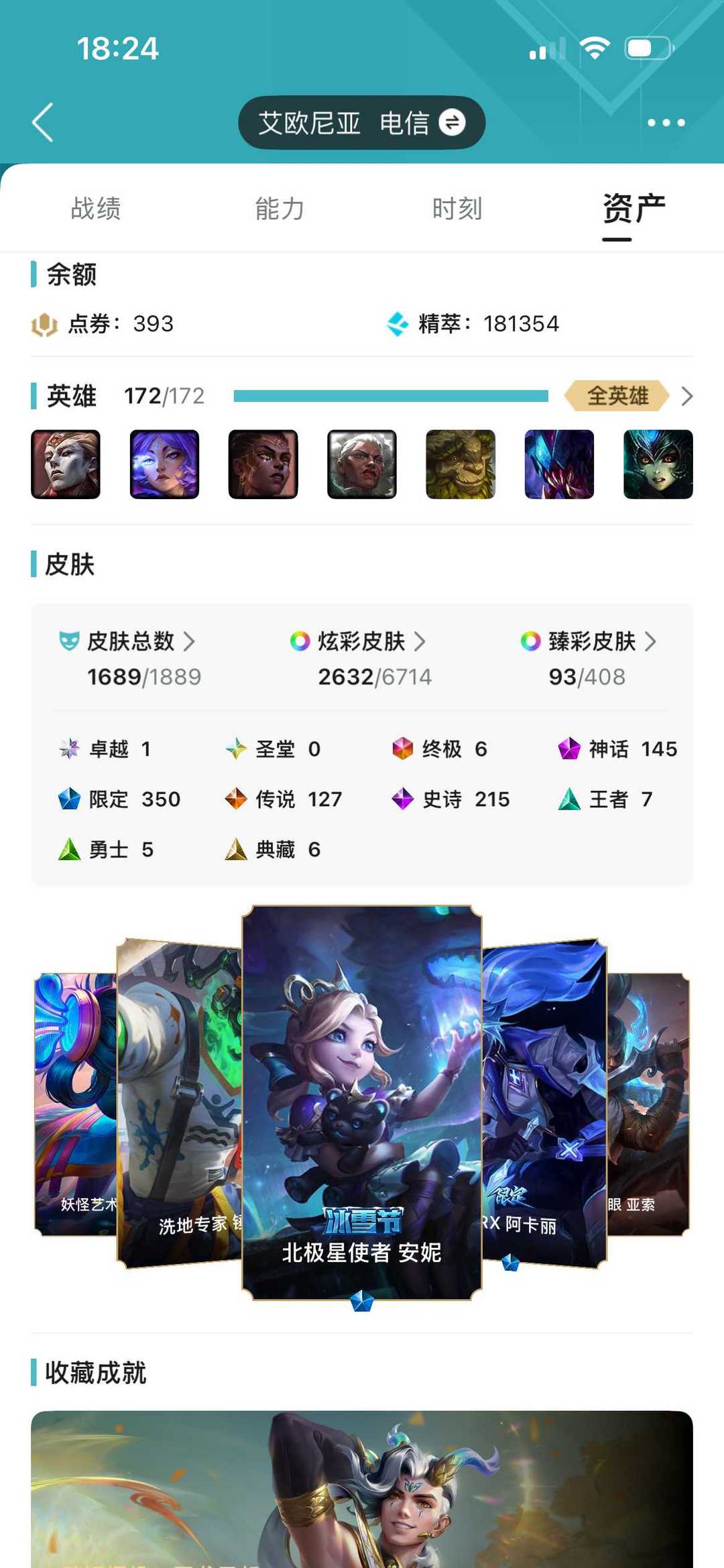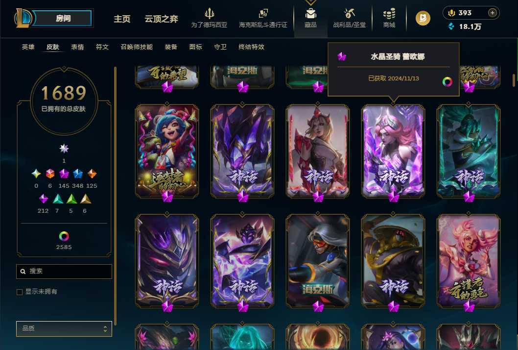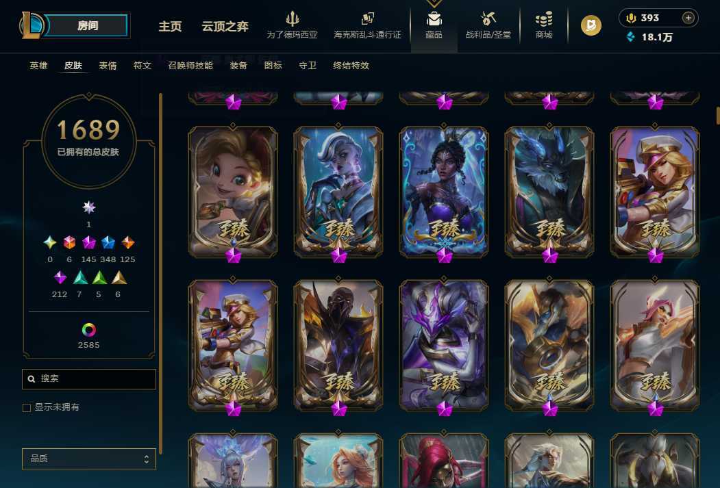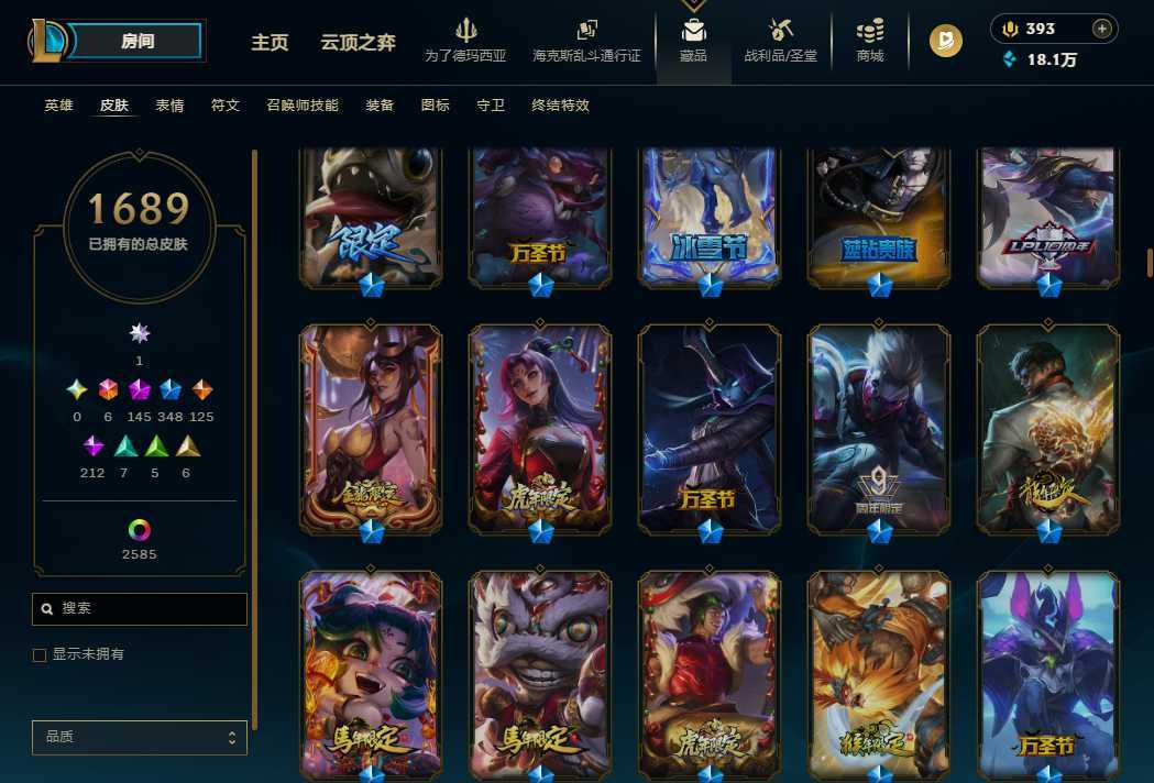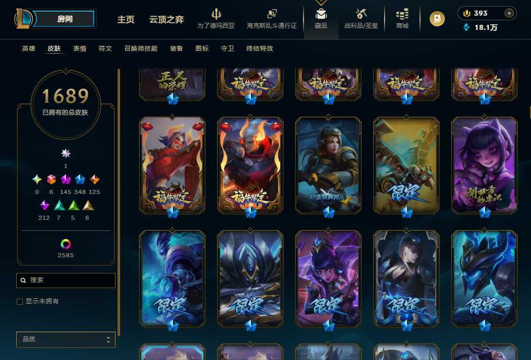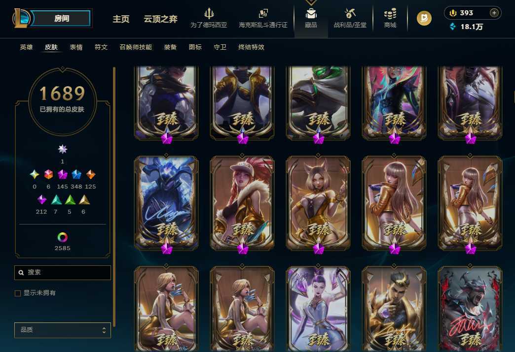 【艾欧尼亚】顶级1689P云顶大师 蓝龙虾 全年限套全至臻全海克斯可排位