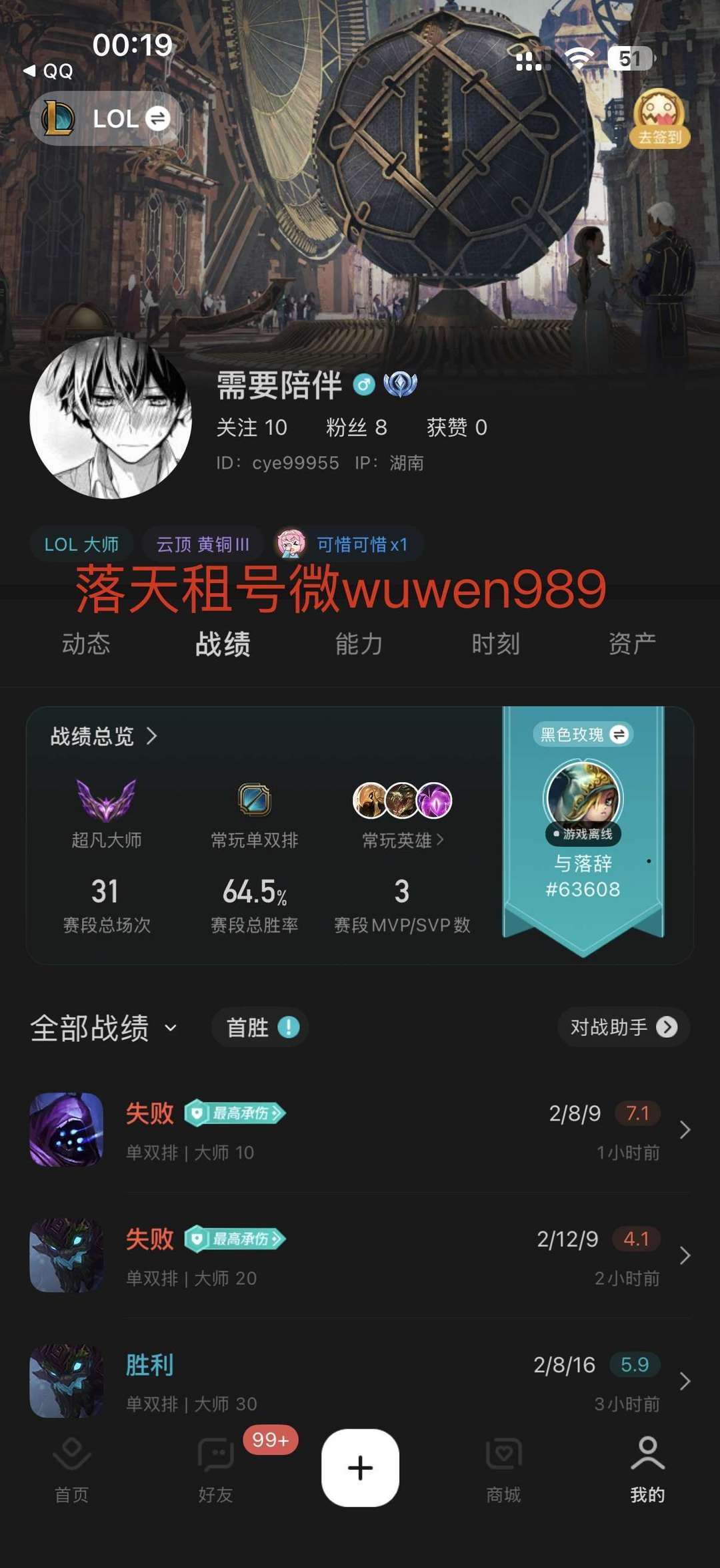 租6送1角色名:与落辞#63608