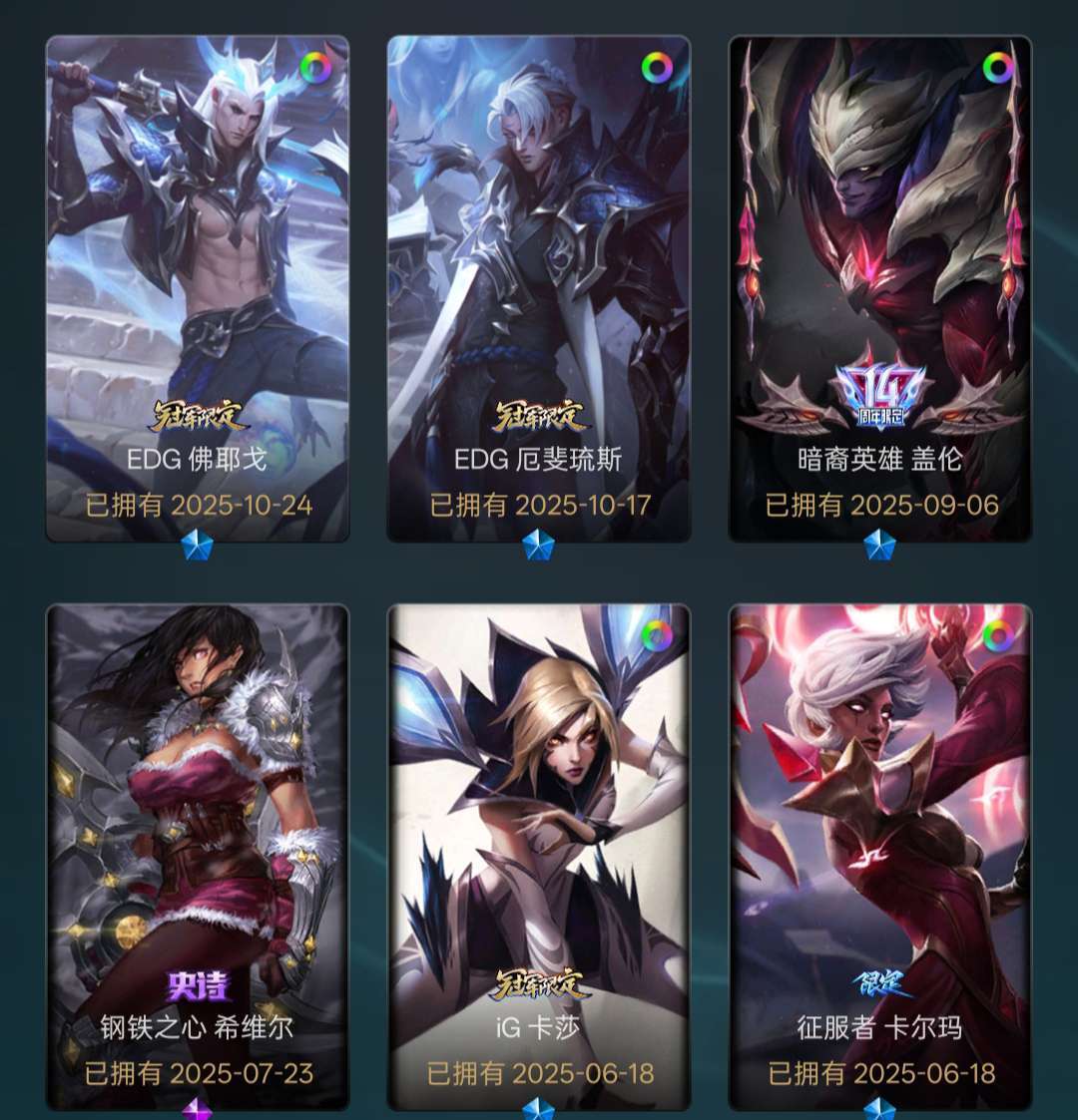 edg厄斐琉斯佛耶戈,ig卡莎,dwg卡牌,drx阿卡丽,ssg纳尔 ,如有冻结请等五分钟