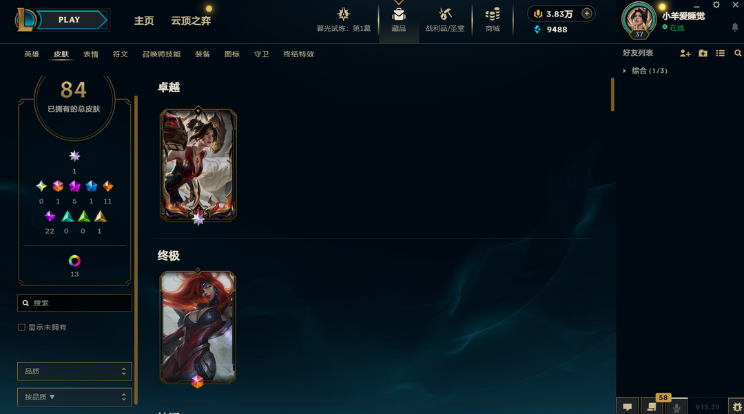 装备描述:⭐【峡谷之巅】钻石可排位⭐全英雄⭐殿堂传奇卡莎VN⭐神拳⭐神龙尊者⭐至臻劫