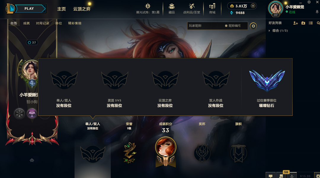 段位:37级 当前赛季无