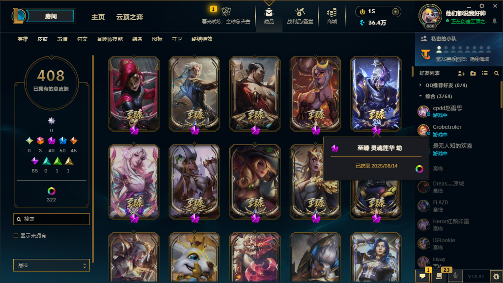 【黑色玫瑰】黄金段位1000皮肤⚡40至臻殿堂薇恩⚡全套EDG冠军皮➕臻彩--神龙尊者➕金色臻彩