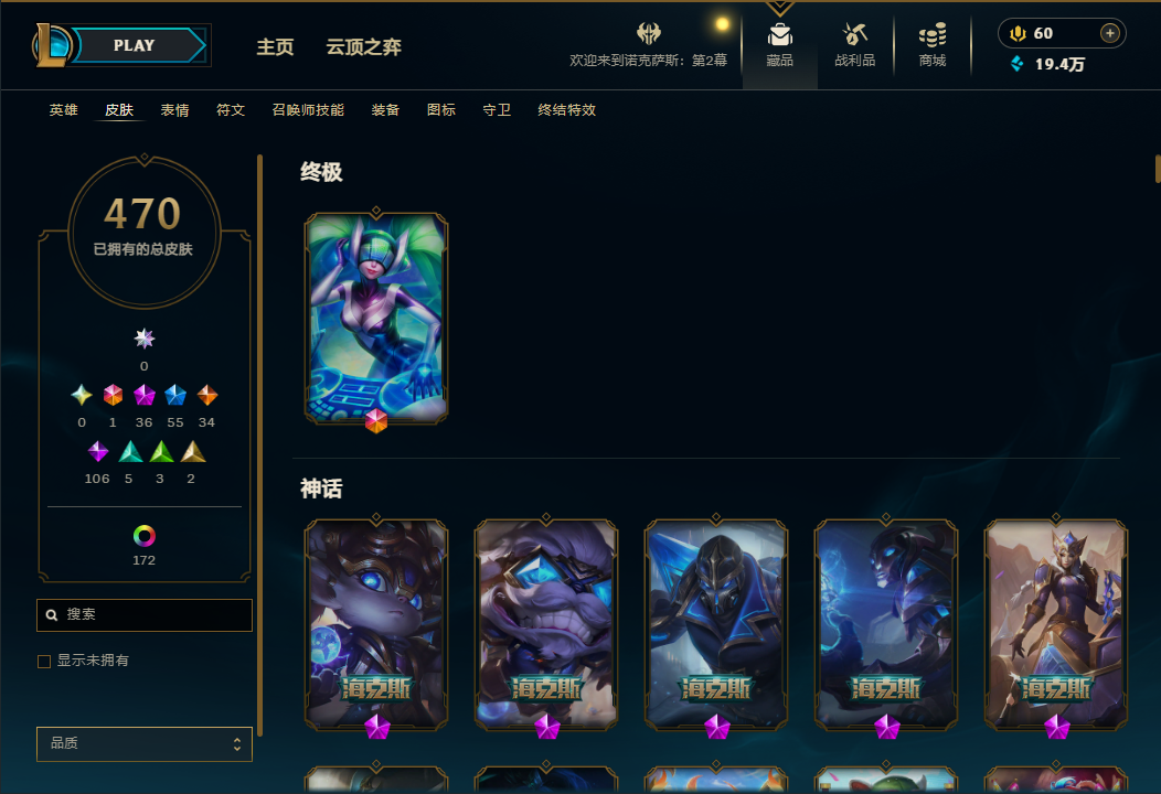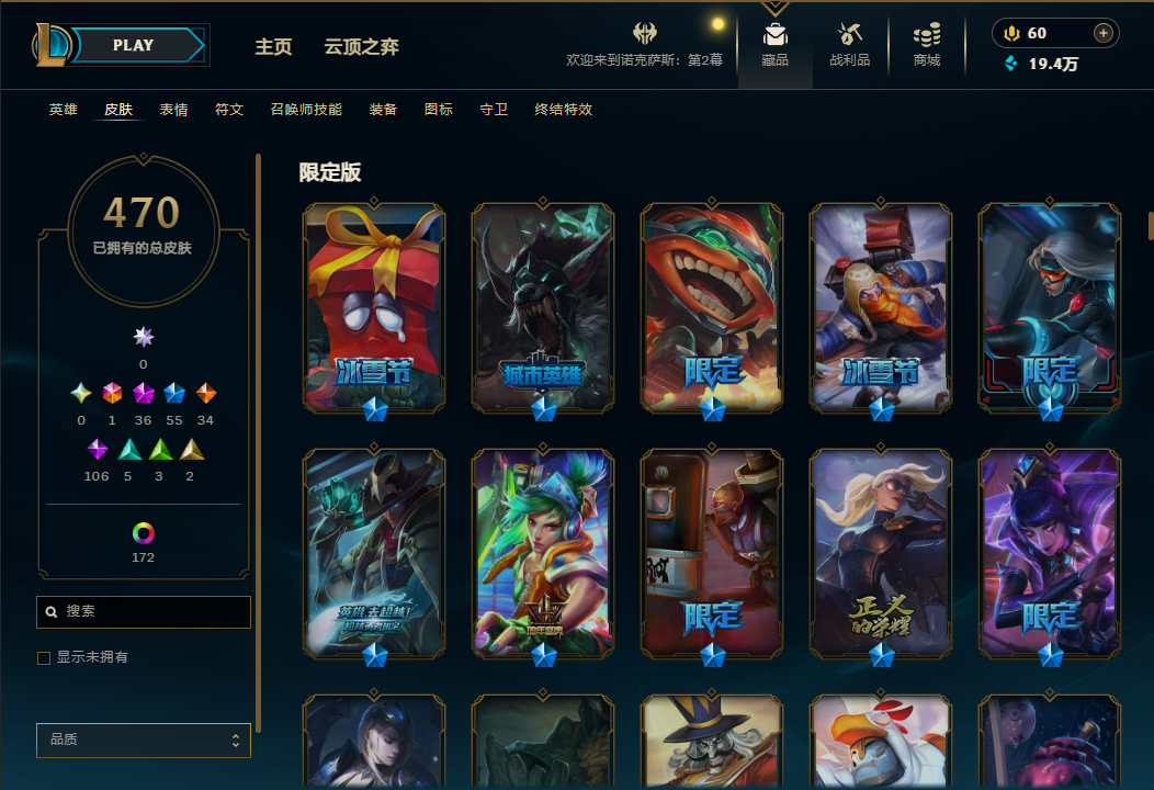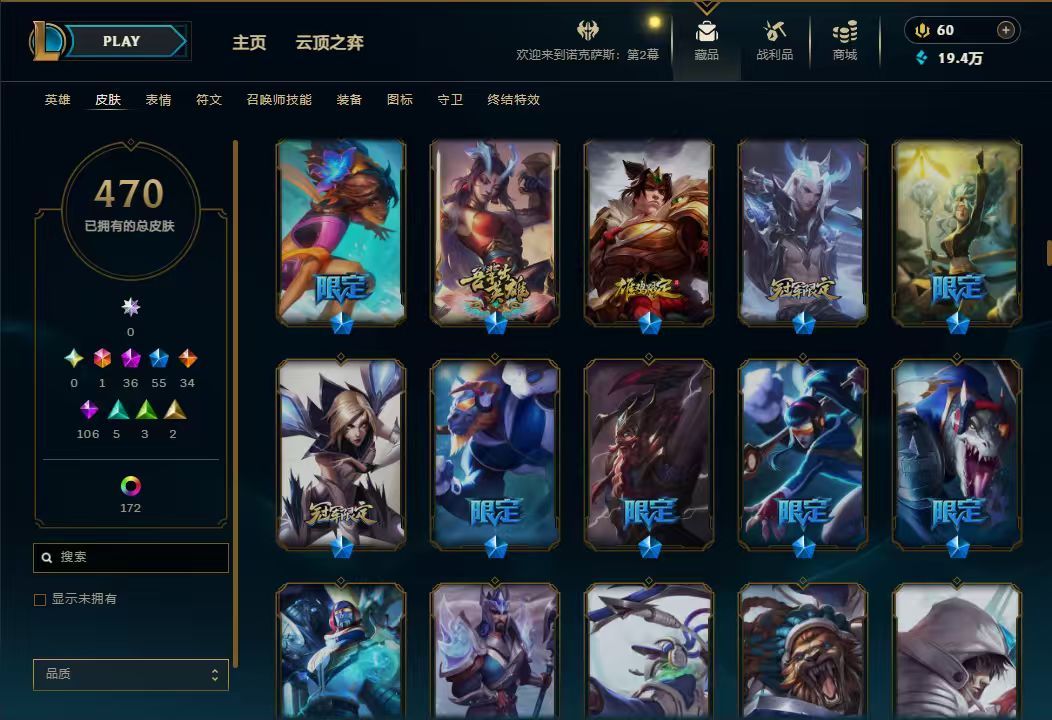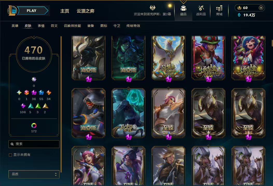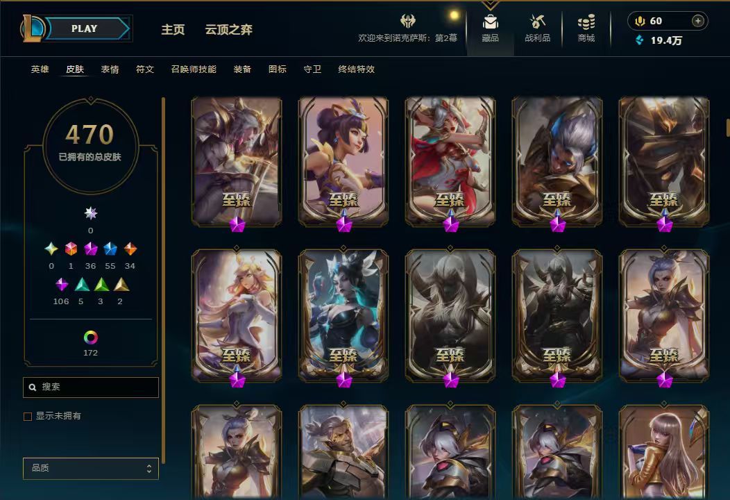 【艾欧尼亚】500皮肤摄魂vn至臻卡莎黑夜李青幻灵金克丝神龙尊者瑟提玄武盖伦黑夜索神王诺手屠龙潘森等