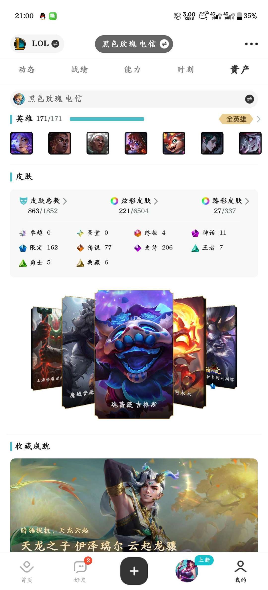 装备描述:800皮肤号便宜出租,龙刀至臻akl等大量年限优质炫彩