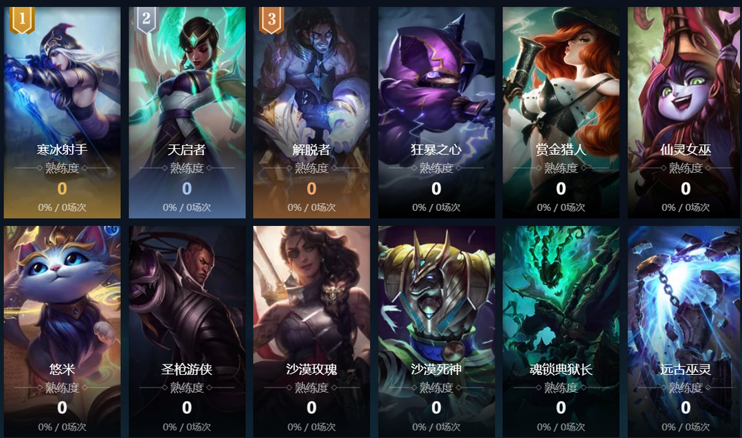 欲望之主 泽拉斯;宗师级钓鱼训练师 贾克斯;女皇 艾希;法国皇室 厄运小姐;社会名流 乐芙兰 炫彩皮