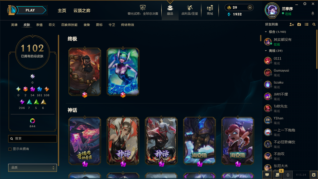 1100皮 龙瞎 龙刀 龙琴 可排位