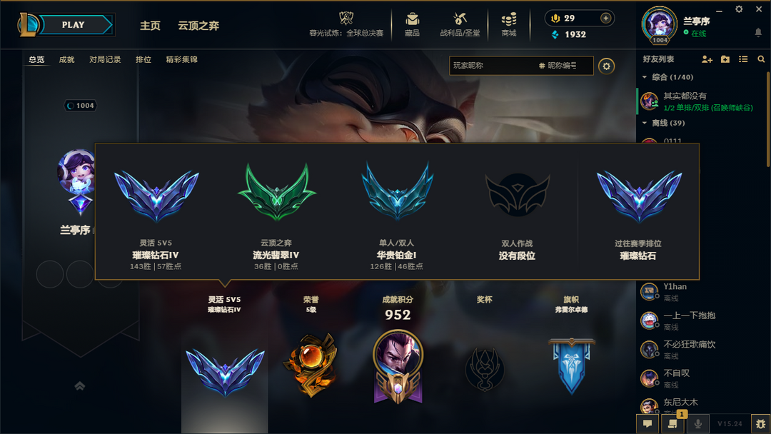 段位:1015级 当前赛季无