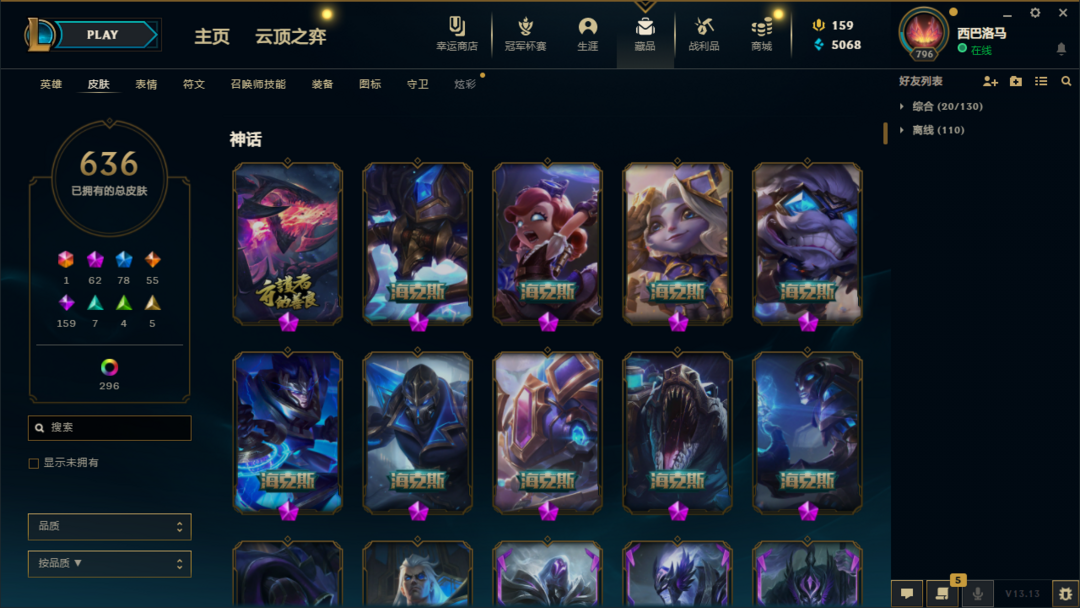 ██ 全英雄 1500皮丨80神话丨可排位丨42至臻丨泳池女警丨神龙李青丨KDA卡莎丨电玩瑞文人马