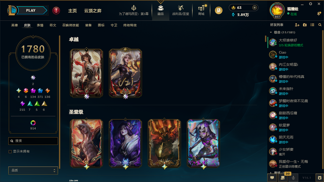 ⭐️1780原皮⭐️134神话⭐不朽卡莎⭐️全神话幻想⭐️129臻彩⭐️371限定