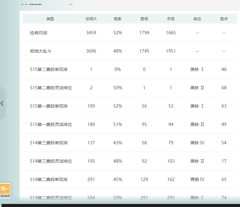 段位:1101级 当前赛季无