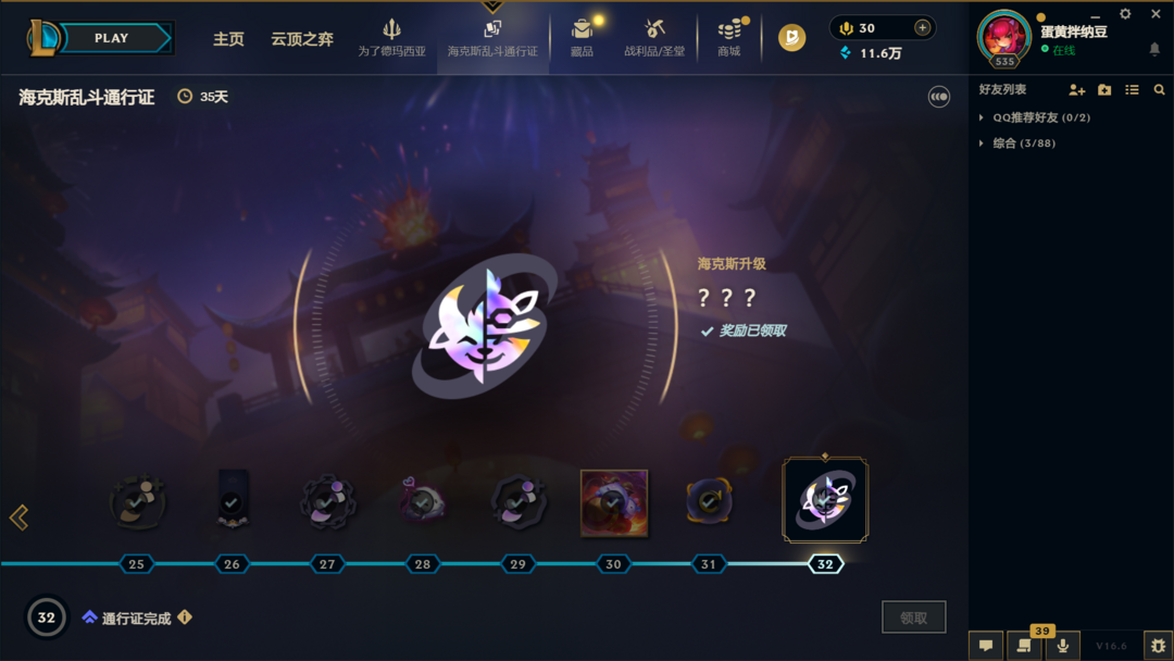 ★艾欧尼亚★禁排位★电一海克斯大乱斗满级通行证妹子号虐菜号