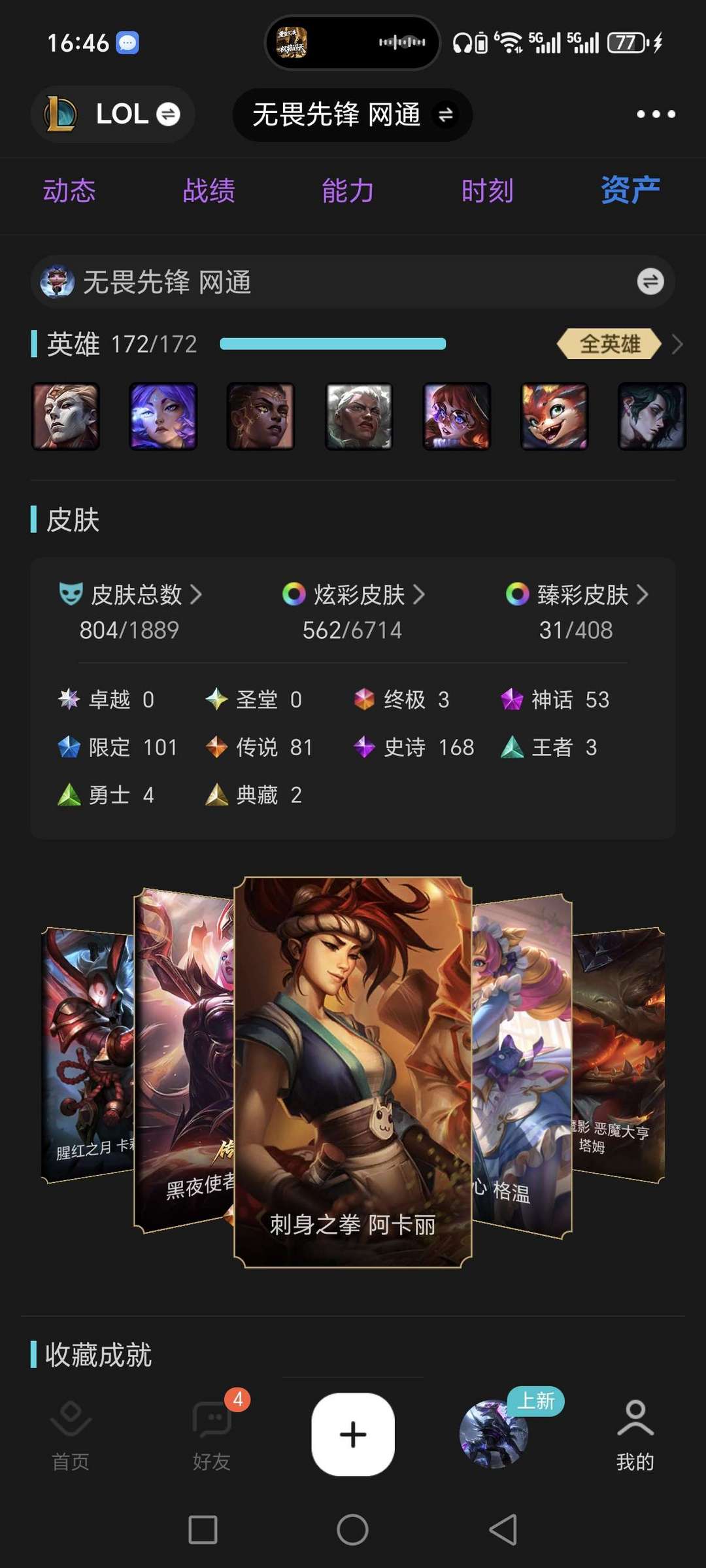 联盟五区 无畏先锋 全英雄 800皮 单双黄金 灵活翡翠 可排位