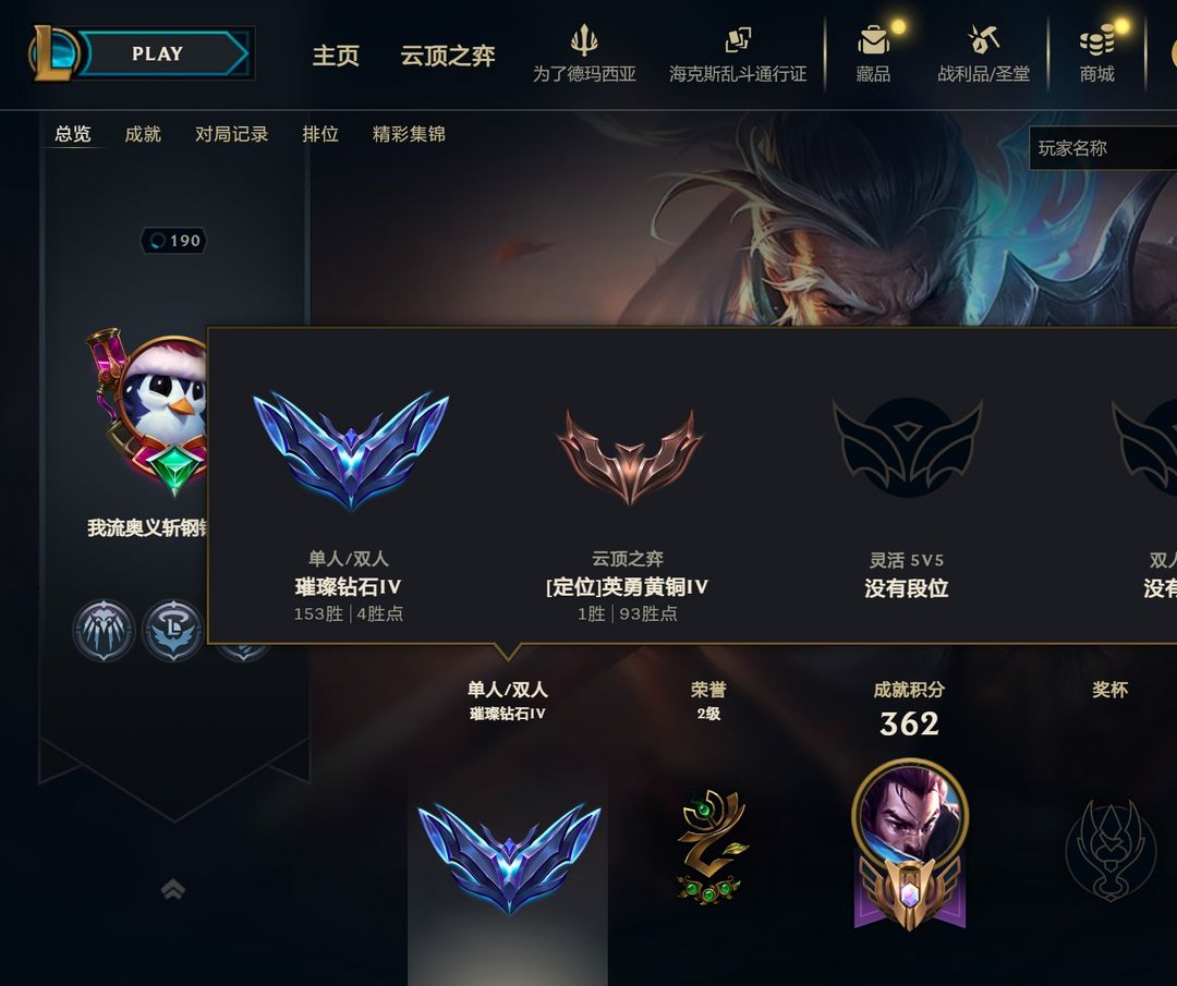 段位:190级 流光翡翠I