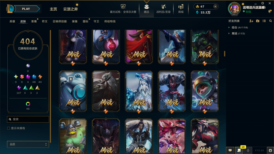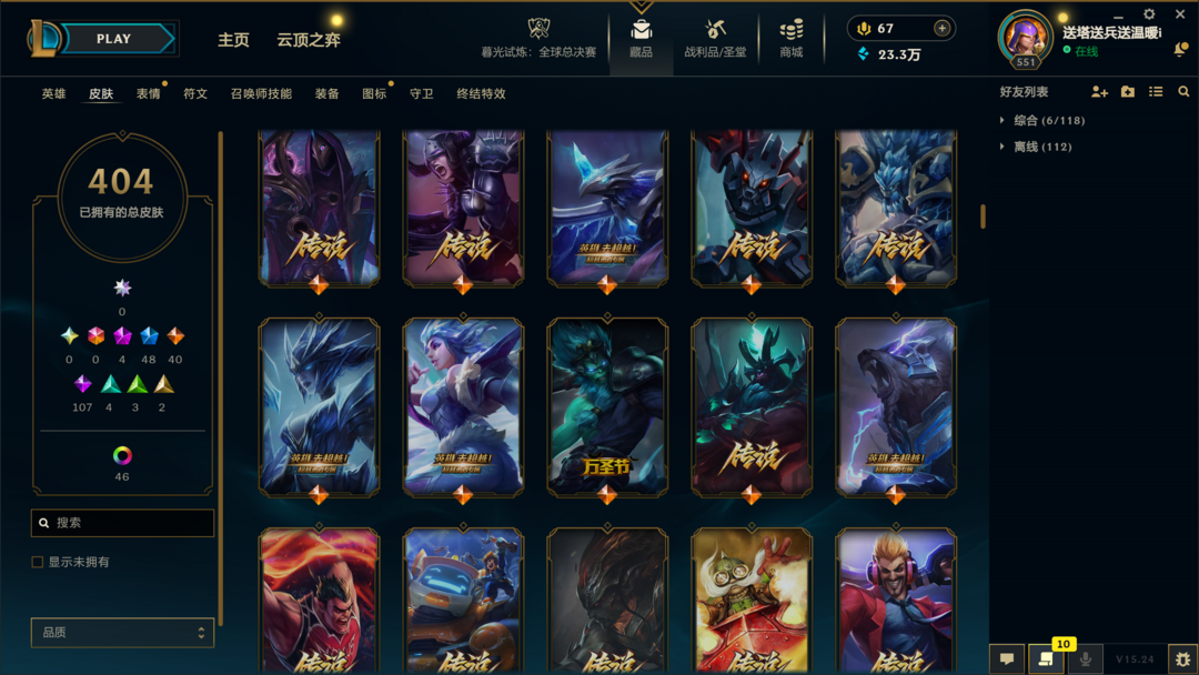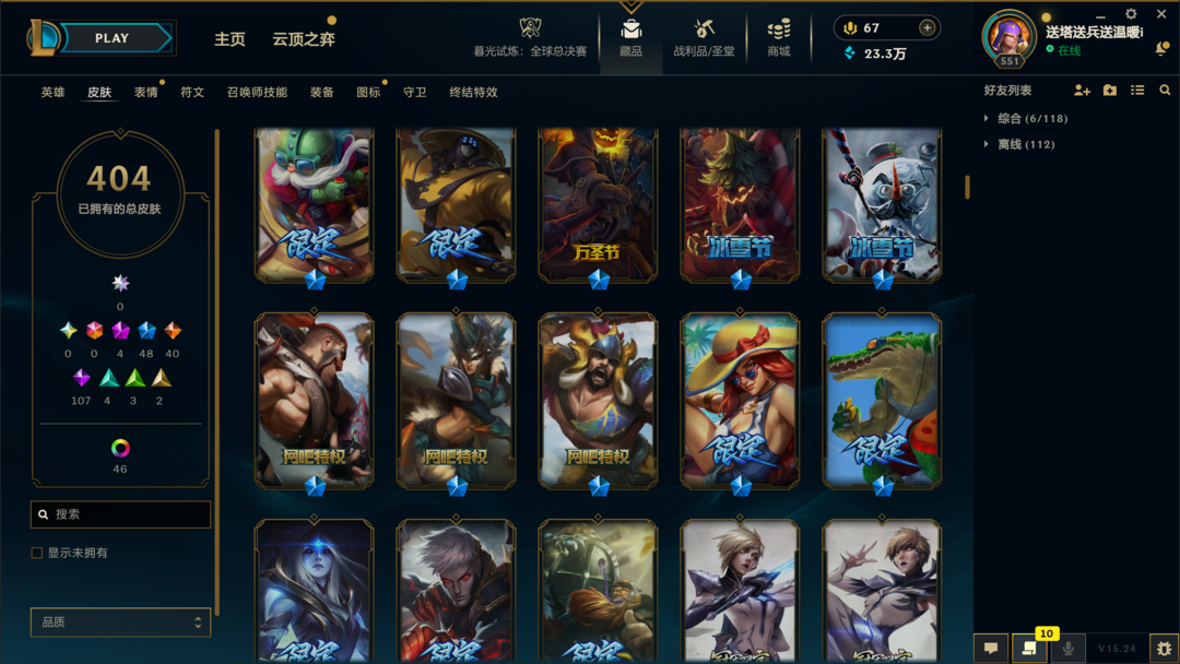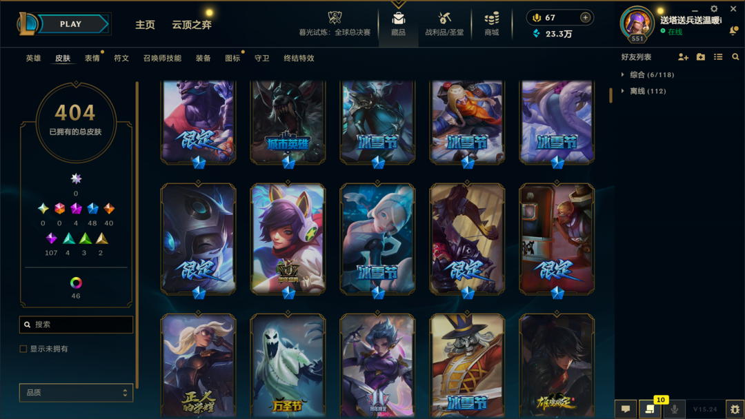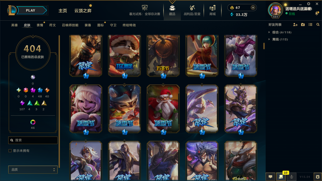 404皮肤〓10至臻海克斯〓神王卧龙〓黑夜亚索〓冰雪节限定