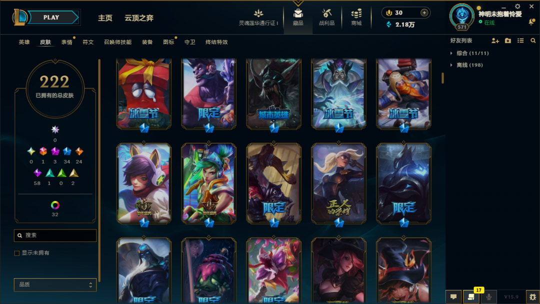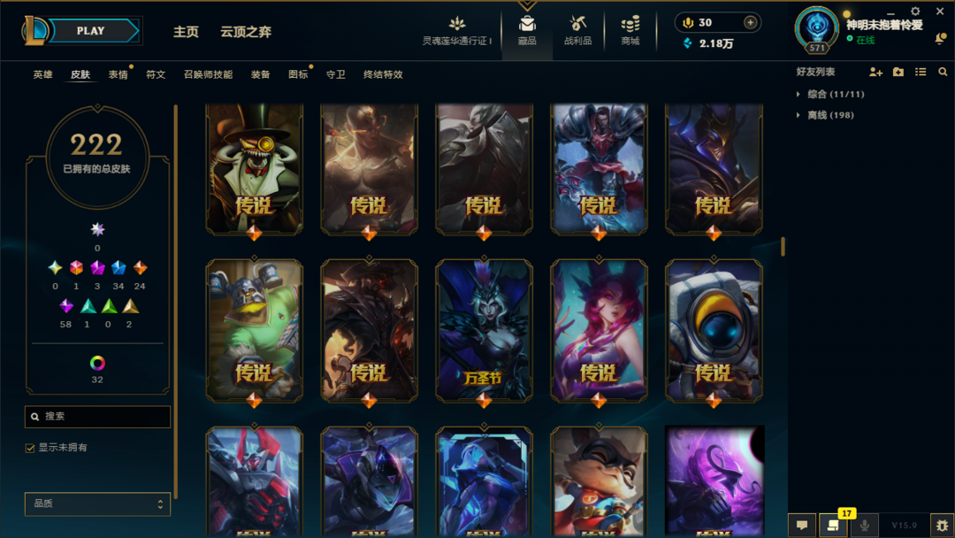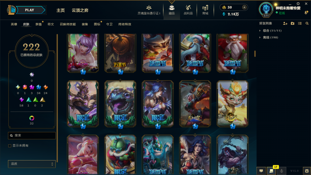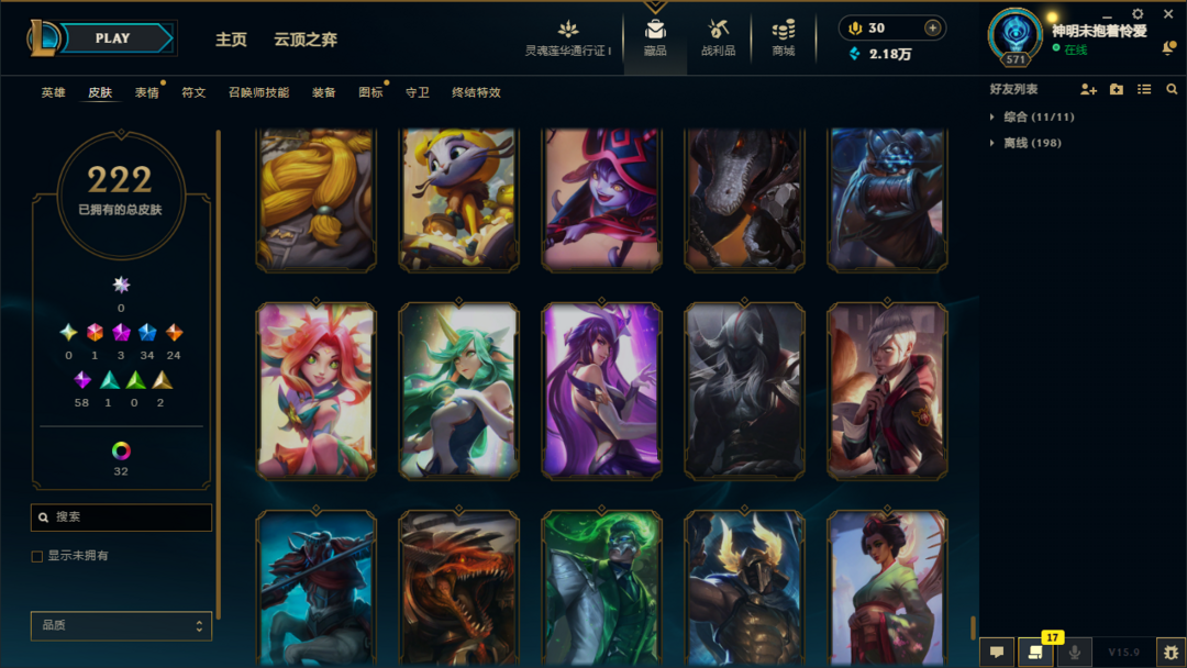 段位准█222皮肤〓10至臻海克斯〓神王天煞劫〓黑夜亚索〓冠军之至〓西部魔影