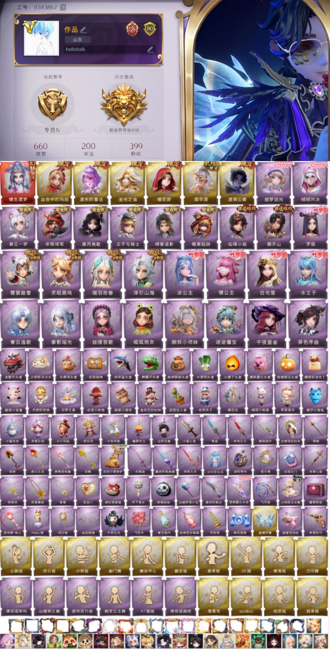 极品ID【作品】渡鸦公爵✨1幻梦6金28紫✨兔宝✨全图鉴满内测全魔盒✨黎明猎手✨千夜星谕✨原始框龙头