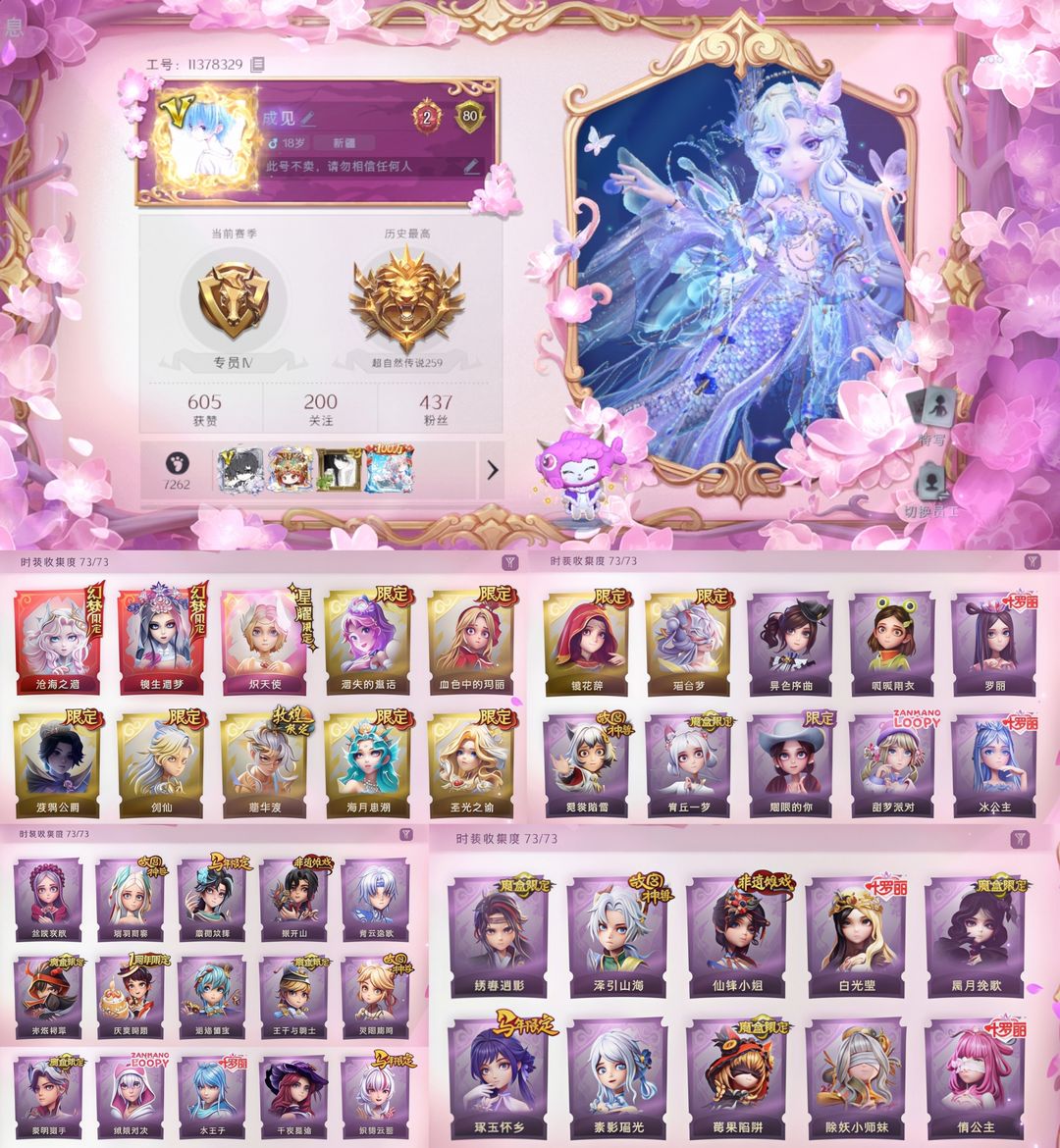 装备描述:已设置二级密码,无法出售金色回收物(金色以下可以卖),定期会往号上补充铲铲币 安卓ios均可登录,恶意撤单、滥用金砖、改id、恶意发言等不文明行为永久拉黑 一单一密保证中途不会挤号,祝游戏愉快~ 禁止使用外挂、恶意发言、用号行骗,若因此类行为导致禁言、封号的,平台提取租客实名地址,必定会立案追责,并根据账号价值全额赔偿。 账号情况: 全套炽天使 镜生遗梦池子抽满 6金皮:血色中的玛丽/遗失的童话/圣光之谕/莲华渡/镜花辞/渡鸦公爵 s1-s6魔盒:青丘一梦 赤炼将军 黑月挽歌 王子与骑士 绣春逍影 莓果陷阱 故宫(瑞羽衔春 泽引山海 霓裳踏雪 灵昭鹿鸣)青花瓷(素影瑶光 青云逸歌) 叶罗丽(情公主 冰公主 白光莹 罗丽 水王子)捉妖奇妙夜(迷途僵宝 除妖小师妹) 露比联动时装:绒绒对决 甜梦派对 非遗摊戏:搬开山 先锋小姐 异色序曲/呱呱雨衣/丝缕哀歌
