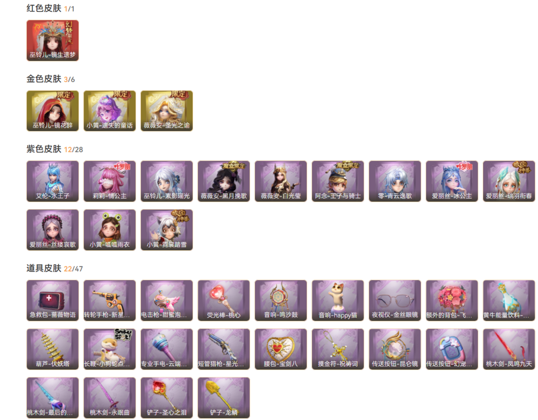 装备描述:满抽镜生遗梦 镜花辞 遗失的童话 圣光之谕 3金11紫 小狗蛇 累氪2985