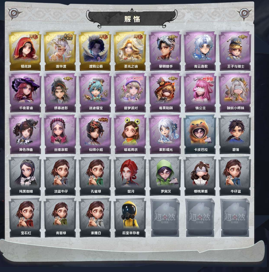装备描述:四金十五紫二十五道具渡鸦公爵莲华渡圣光之逾镜花辞莉莉全皮千夜星瑜暗夜小恶魔