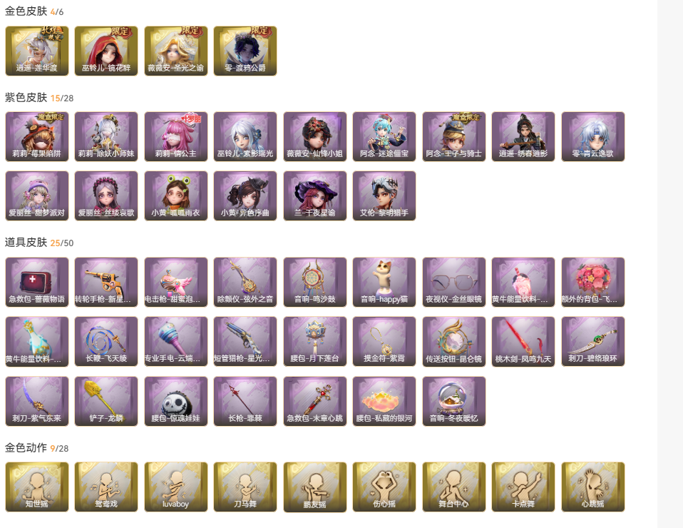 四金十五紫二十五道具渡鸦公爵莲华渡圣光之逾镜花辞莉莉全皮千夜星瑜