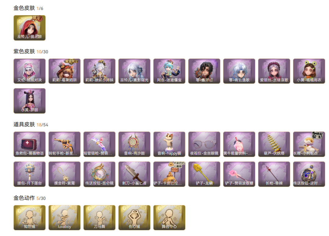 装备描述:性价比 巫玲儿-镜花辞 10紫 搬开山 青云逸歌 绒绒对决 情公主 素影瑶光 迷途僵宝 小鲨匕 小狗蛇 卡皮巴拉铲 赞萌露比