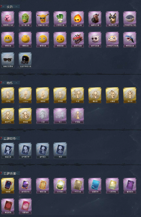 装备描述:巫铃儿-镜生遗梦 【金色皮肤】逍遥-莲华渡、薇薇安-圣光之谕、小黄-遗失的童话、巫铃儿-镜花辞 【紫色皮肤】莉莉-情公主、爱丽丝-丝缕哀歌、逍遥-绣春逍影、小黄-呱呱雨衣 【道具皮肤】电击枪-甜蜜泡泡枪、铲子-圣心之泪、摸金符-紫霄、桃木剑-凤鸣九天、传送按钮-幻宠之门、刺刀-碧络琅环、音响-鸣沙鼓、额外的背包-飞花令、腰包-宝剑八、夜视仪-金丝眼镜、铲子-龙鳞、传送按钮-昆仑镜、黄牛能量饮料-青玉抱丹、摸金符-祝祷词、长鞭-小狗蛇点点鞭、葫芦-伏妖塔、音响-happy猫、转轮手枪-新星时代、急救包-蔷薇物语、长鞭-飞天绫 【头饰】精致露比头套、鱼头怪头套、烈焰红唇头套、大葱明头套、火爆了头套、面具马头套、哈士奇头套、萨卡班甲鱼头套、嘻嘻头套、滑稽头套、呆滞头套、卑微头套、龙傲天头套、驼半仙头套、小狗蛇点点头套、咬咬鲨头套、像素朋克墨镜、后室幸存者头套 【背饰】梵音莲华、天使的呼唤、蝶恋花、绒团小狐狸 【挂饰】九色祥鹿、小小玛丽、未竟乐园、小鲨包包、天使消失的年代、钗头凤 【动作】七仔摇、luvaboy、鸳鸯戏、刀马舞、DL摇、鹏友摇、心跳摇、伤心摇、舞台中心、青海摇、举牌、抬手、KT