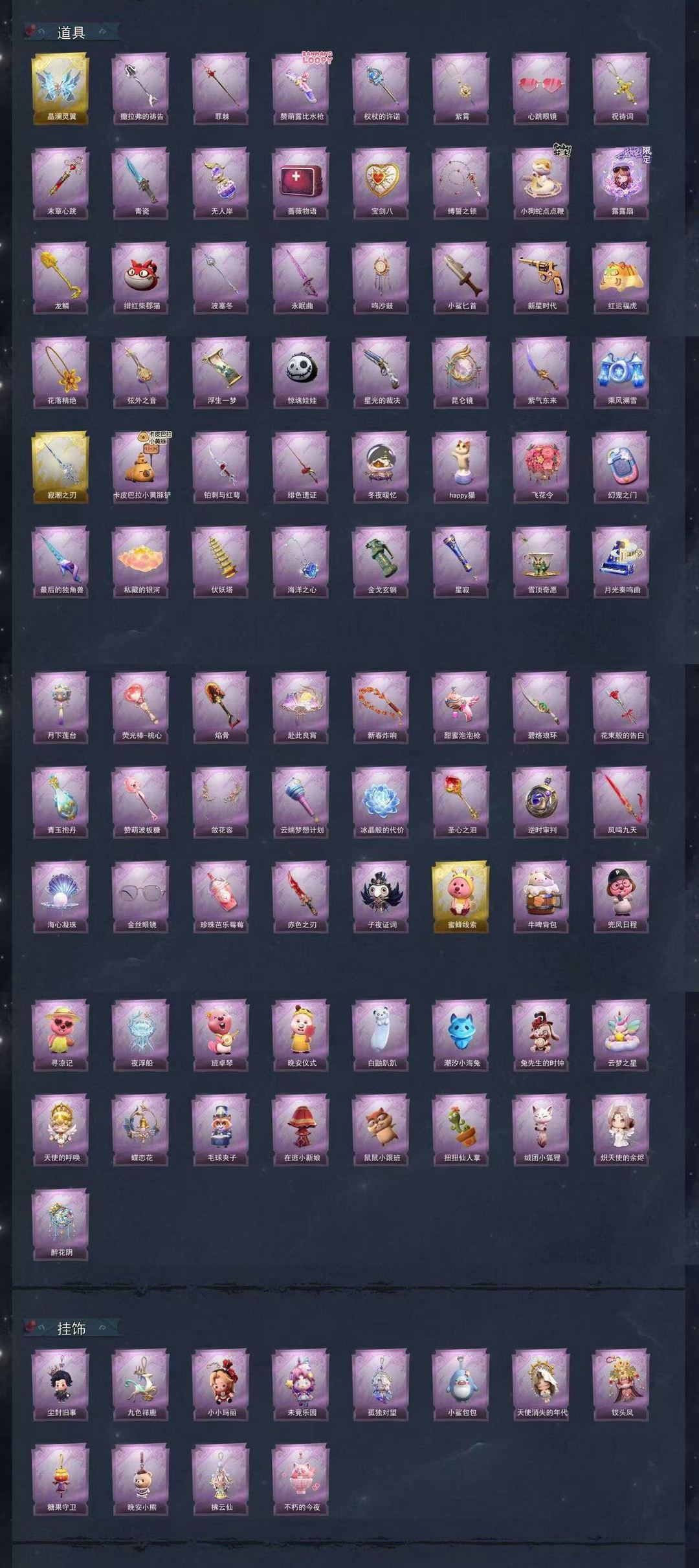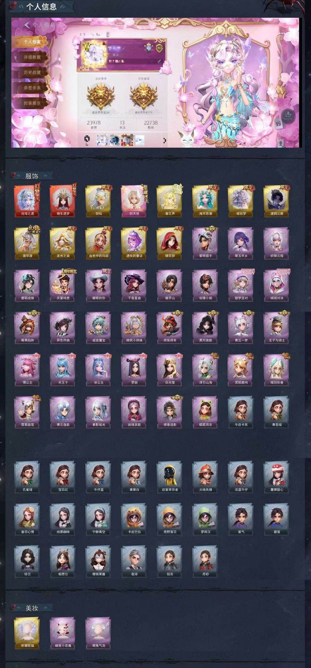 装备描述:万氪全皮全图鉴✨两万粉✨2红1粉10金33粉✨沧海之遗✨春之声✨喜欢请收藏