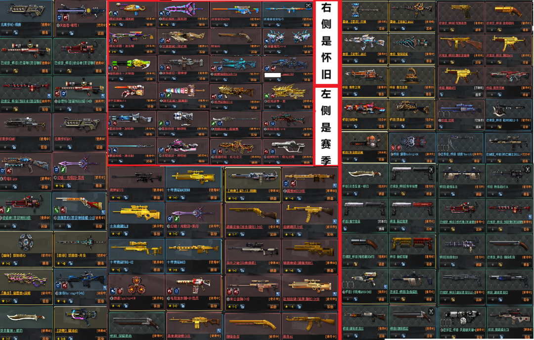 限制: 租号1次及以上 |装备描述:重铸怀旧星陨巨锤、邪皇圣帝、盘龙血煞、海皇之怒、黑龙炮、旋风斧头、金红双蝎、猎魂骑士、吹风机、殒裂、毁灭者、终结者 闪电94、光束、3-21赛季、 第3赛季, 清凉夏日一清凉夏日M200、清凉夏日RPG-7 第5赛季, 异域朝野一燧发枪 第6赛季, 绿野仙踪(全套)一绿野仙踪FA 第7赛季, 赛克(全套)一赛克X4 第8赛季, 冰雪奇缘(全套)一冰雪魔咒PB4 第9赛季, 巨龙战争(全套)一巨龙战争、圣 第10赛季,蒸汽幻想(全套)一蒸汽幻想ST4 第11赛季,机械恐龙(全套)一机械恐龙TS-4 第12赛季,奇幻乐园(全套)一奇幻乐园-连发弩,奇幻乐园。双手剑 第13赛季,星战前线 (全套)一星战前线-激光剑,星战前线、射线枪,星战前线、加特林 第14赛季,丛林遗迹 (全套)一遗迹丛林-狂暴者,遗迹丛林、毁灭者, 遗迹丛林、封印者 第15赛季, 超械世代 (全套)一极光之翼 第16赛季,漫游奇境(全套)一红心之王 第17赛季,沙漠迷城(全套 第18赛季,超能战士(全套 第19赛季, 冰海战记 (全套) 第20赛季,太空漫游(全套 第21赛季,饼干王国(全套)