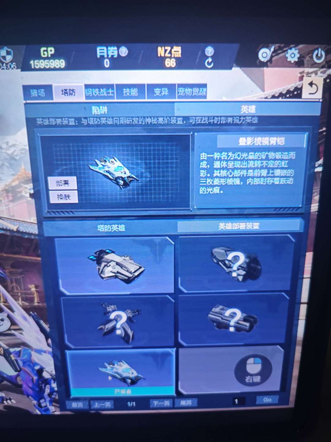 装备描述:天耀套 带四放三臂铠 三联携 女帝 塔防全装