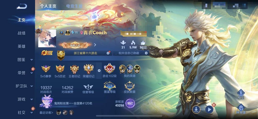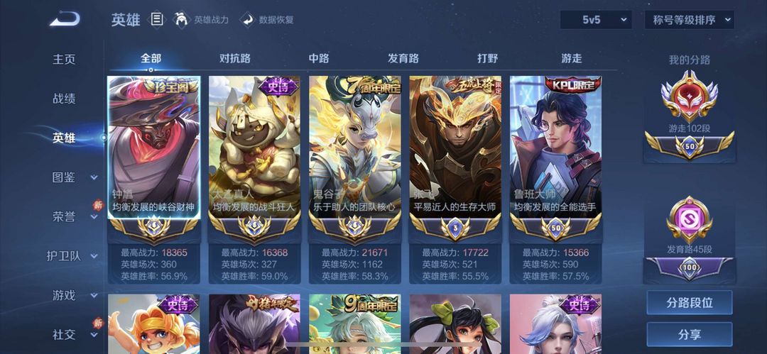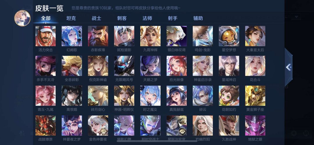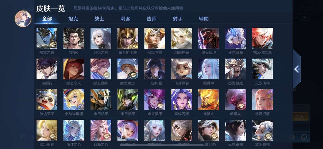 【V10贵族 653皮肤】102段国服百强游走历史2万1鬼谷❤️超多质量皮肤不能招募可自行带妹组队