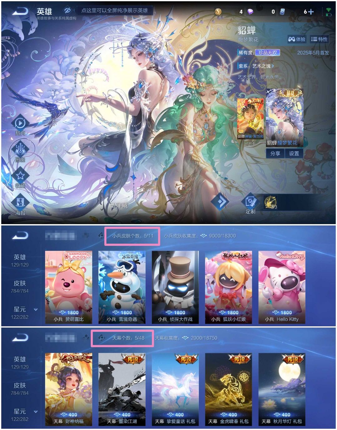 784皮〖真满皮|全皮极品女号〗⭕马年新皮全有⭕满典藏✨满星传说✨满按键✨满无双✨满珍品✨五小兵