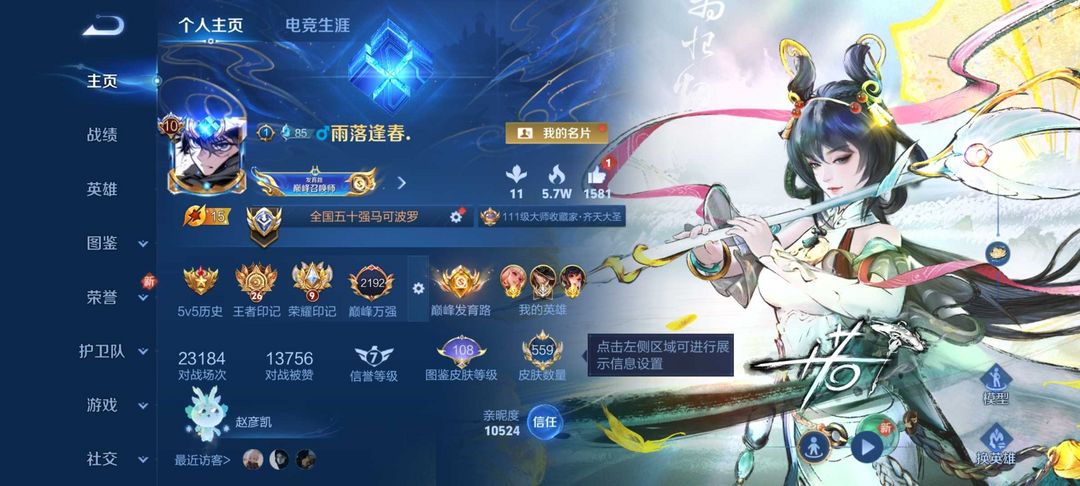 游戏区服:王者荣耀-QQ安卓-QQ账号 -手Q504区-影龙天霄