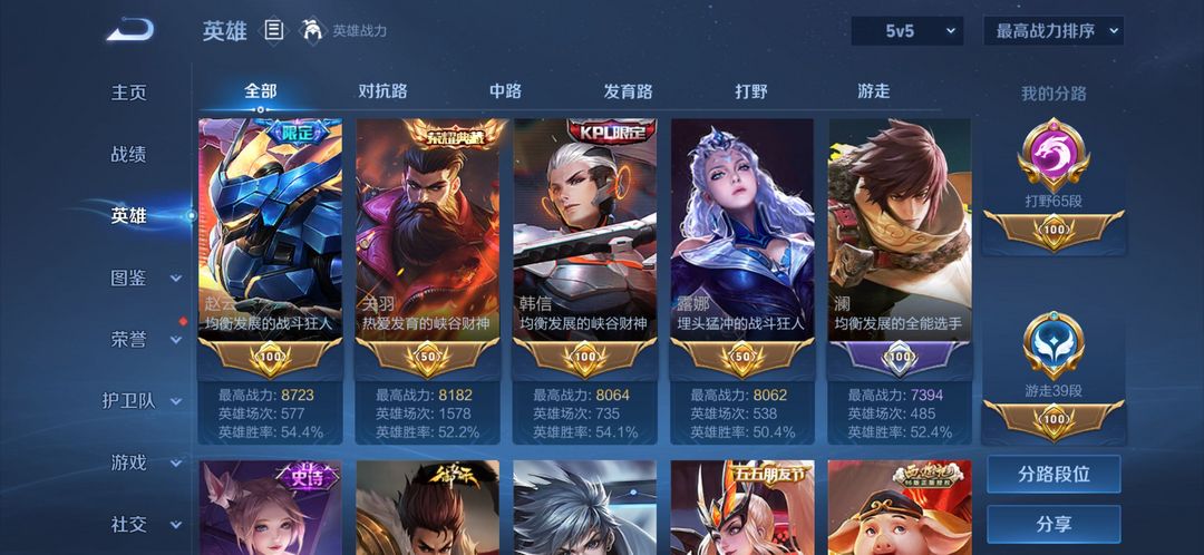 65段打野小魔方❤️1.43w老虎1.39w马超万战橘子马克火舞还有各种金标