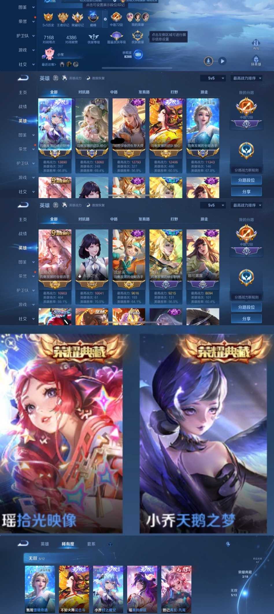 漂亮女号✨72段中路✨国服小乔国服西施✨国服甄姬万战弈星✨万战火舞万战王昭君✨兔狲蓬尾续相思✨全蛇年