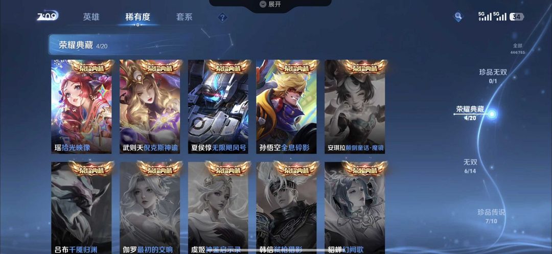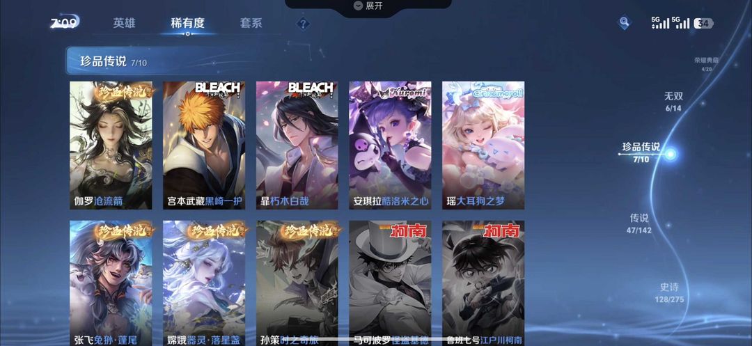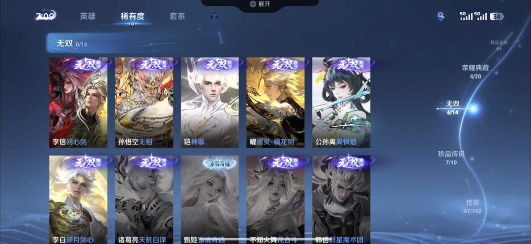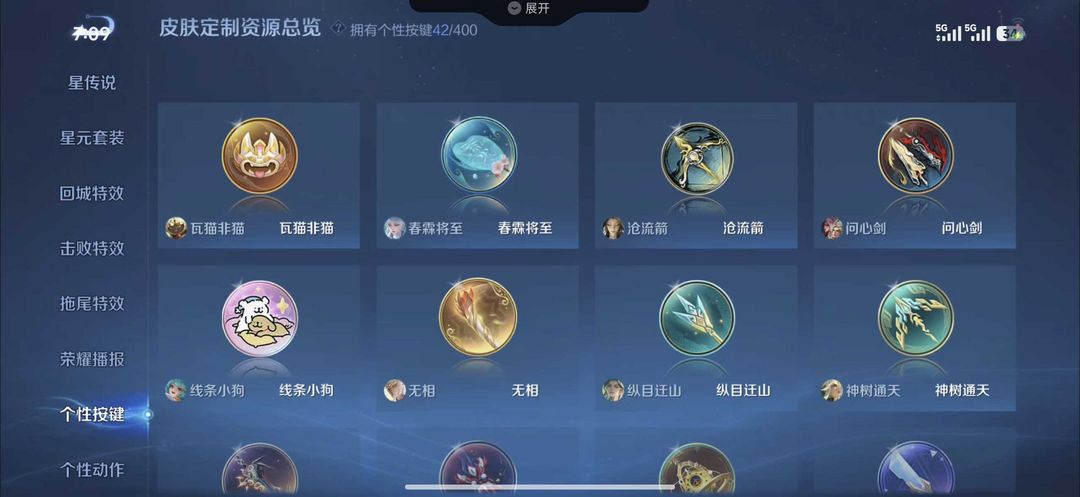 问心剑沧流箭马限全套✨五个典藏七珍品六无双五十款传说皮肤四星传说50按键
