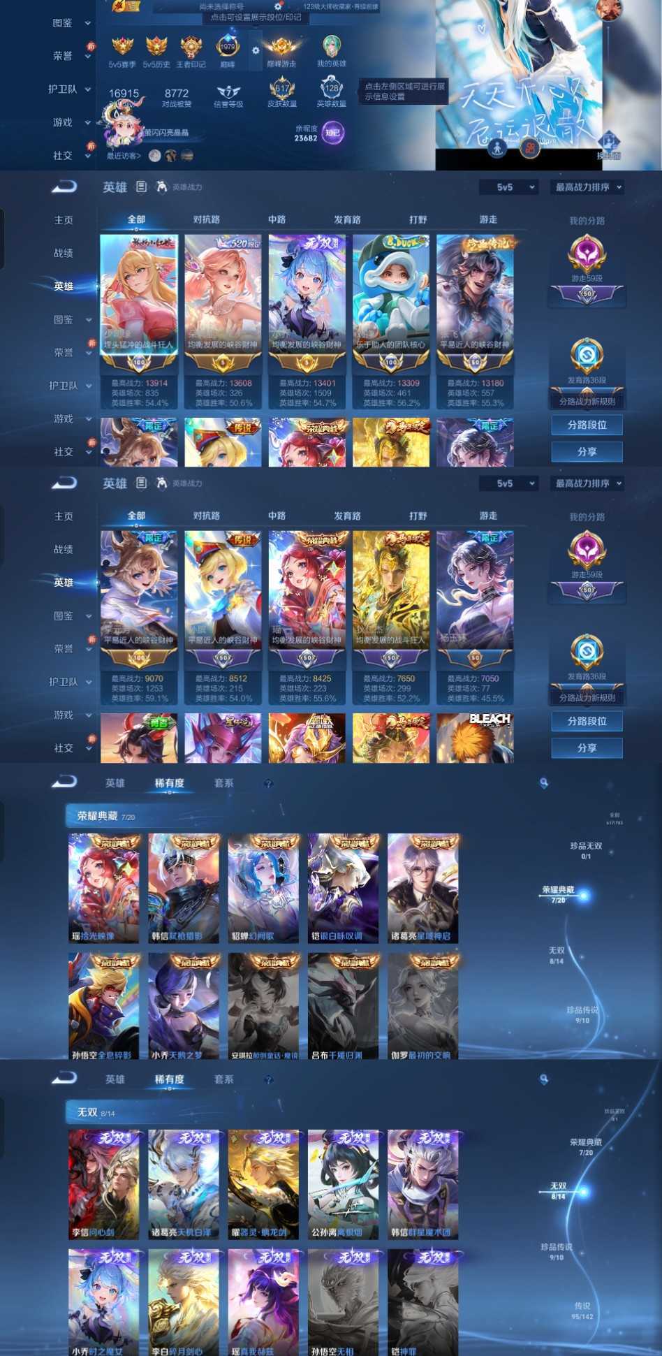 限制: 租号2次及以上 |装备描述:时间到了还登录白玩或者顶号全部改密拉黑处理永不解除,顶号机器会秒禁玩改密,顶号不仅拉黑还没得玩,赚三两块不容易,请理解谢谢。 ????????????????? 请勿开挂,挂机,送头,骂人,撤单后游戏等如有违规永久拉黑永不解除。 重置二级密码不要费劲了,号主每天都会上号查看,多行不义必自毙,人在做天在看,多做好事多自律,少做缺德事。 该号英雄129个皮肤614个,典藏17个,无双5个,珍品传说1个,星传说5个,传说108个,史诗219个,祝您游戏愉快~