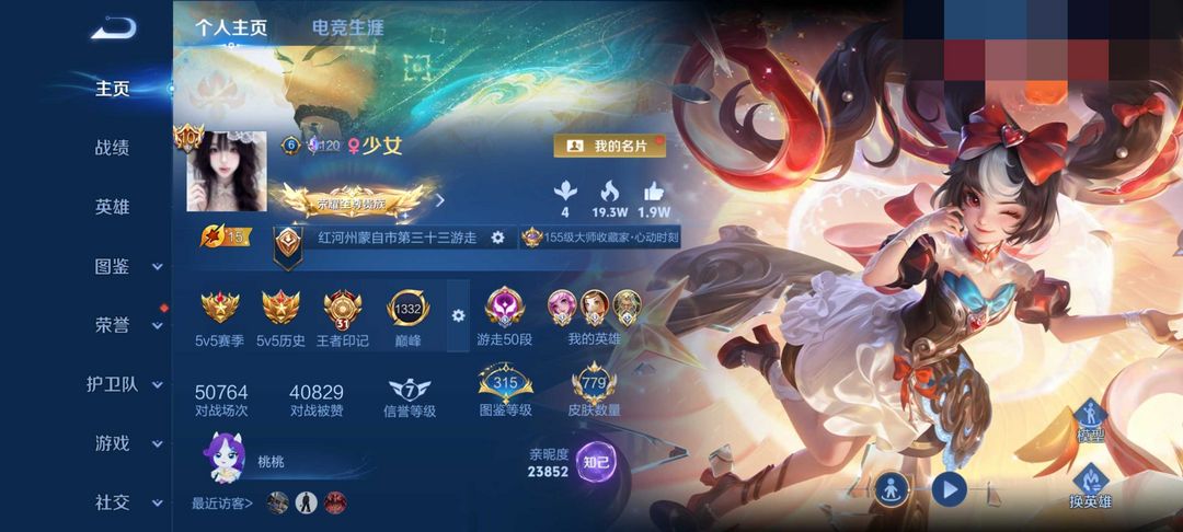 荣耀v10不禁言❤️779皮满水满按键6小兵❤历史国服瑶❤安琪拉-颠倒童话❤️满马年图鉴315级