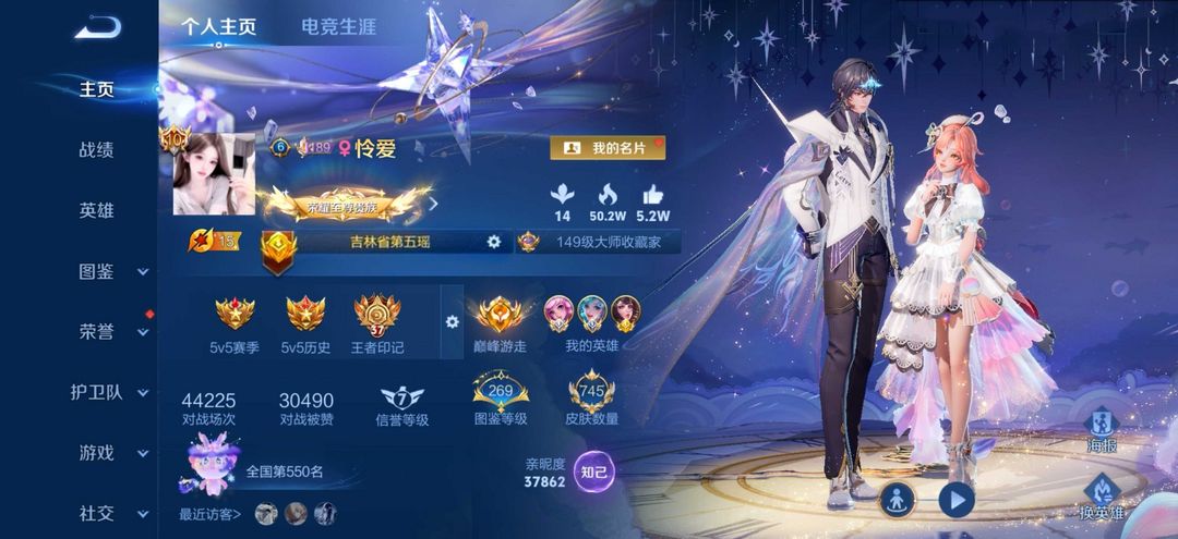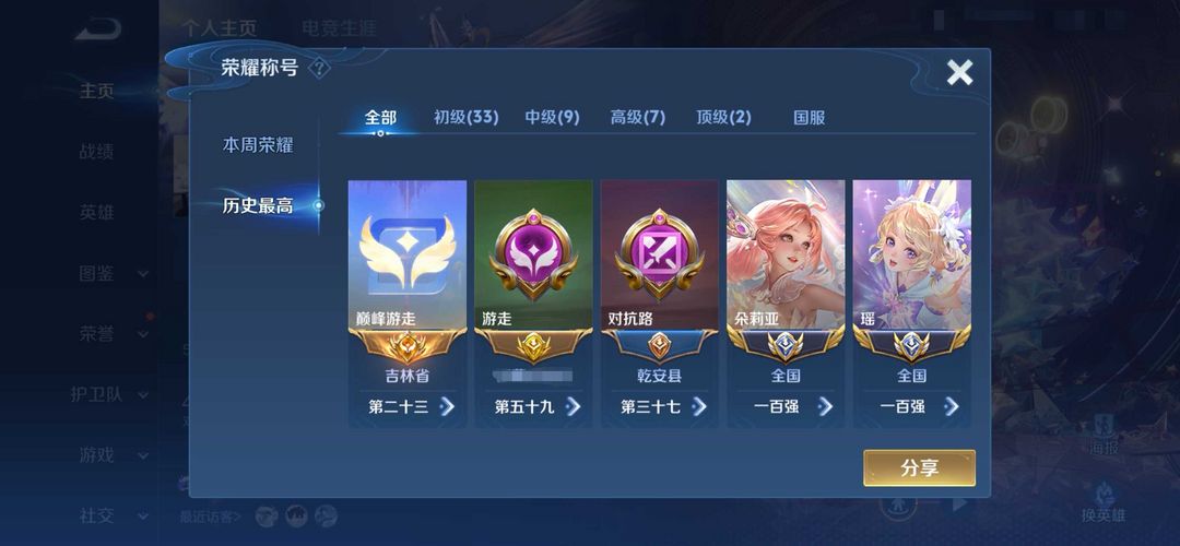 荣耀v10不禁言❤️国服瑶/朵莉亚❤️745皮满水晶满无双满珍品❤️满按键满小兵 女号
