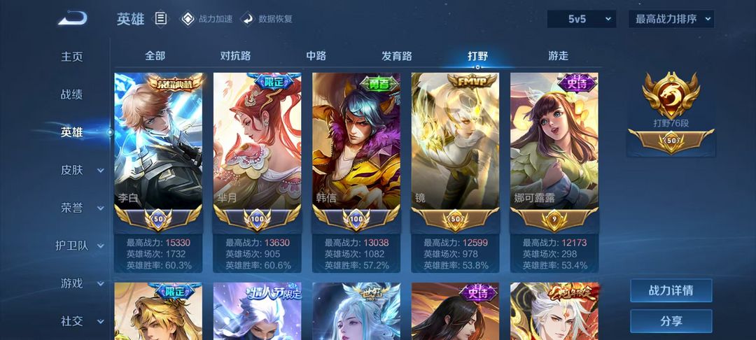 70段打野历史双小国⑩金标李信无双安吉拉典藏秒入 马年已补 伽罗珍品已拿 三小兵皮 满无双多水百传