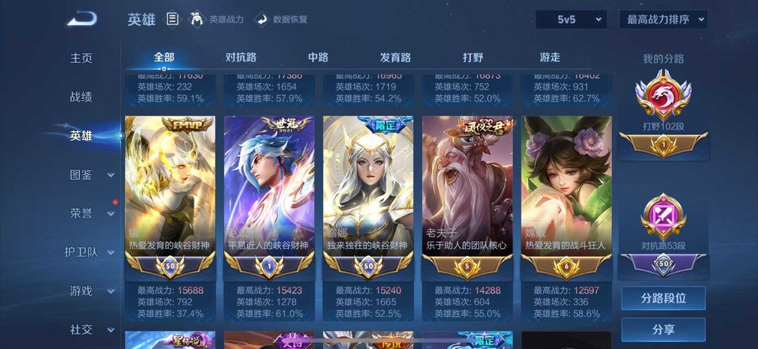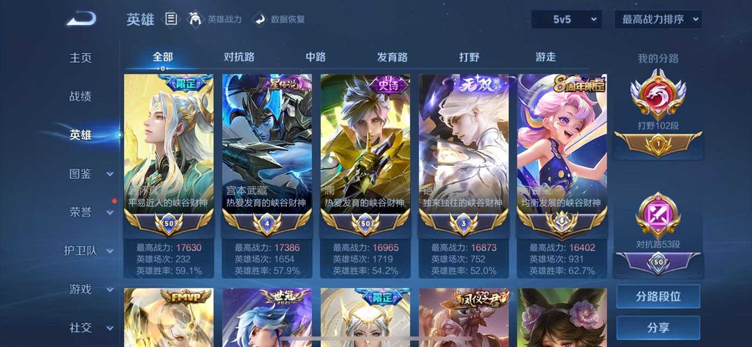 百段打野/无双v10历史国标正式服国服澜镜露娜/可排位巅峰