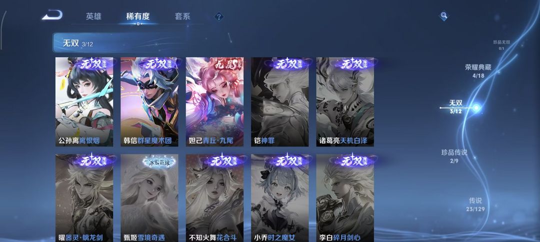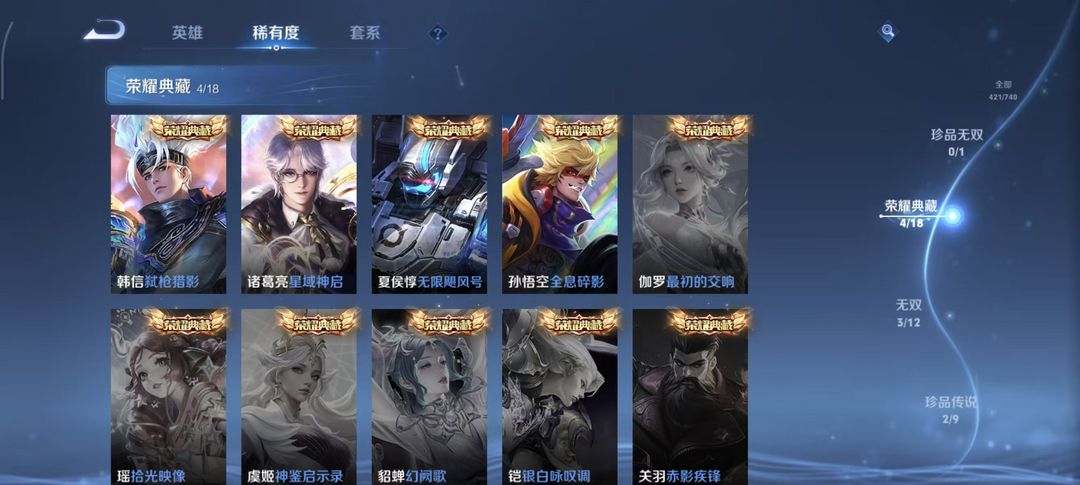 限制: 租号2次及以上 |装备描述:贵族等级V10,段位至尊星耀,英雄数量126,典藏皮肤数4,皮肤数量421,至尊宝/愿照·九州拓/群星魔术团(韩信)/星域神启/逐花归海/离恨烟/妄想实况/玉兔公主/怪盗基德/弑枪猎影/青丘·九尾/江户川柯南/至尊宝/愿照·九州拓/群星魔术团(韩信)/星域神启/逐花归海/离恨烟/妄想实况/玉兔公主/怪盗基德/弑枪猎影/青丘·九尾/江户川柯南