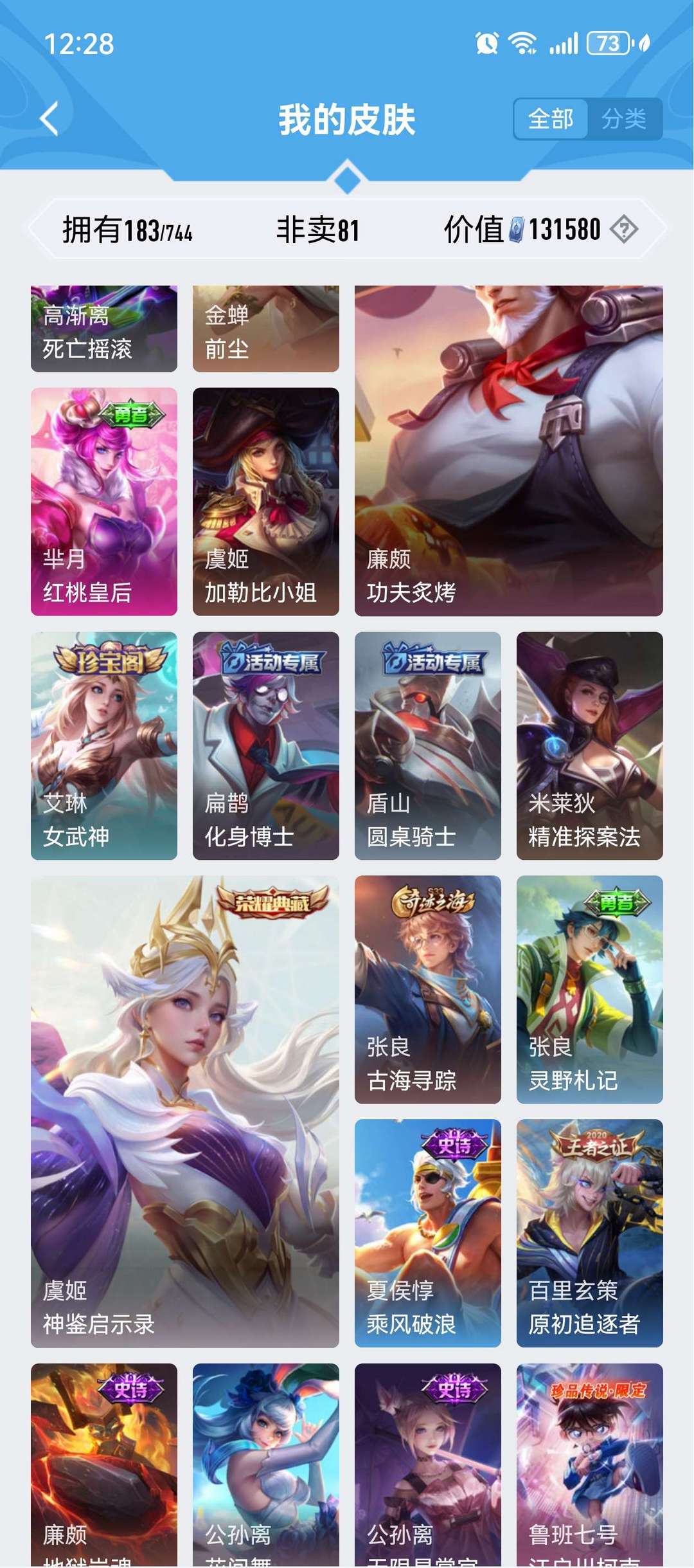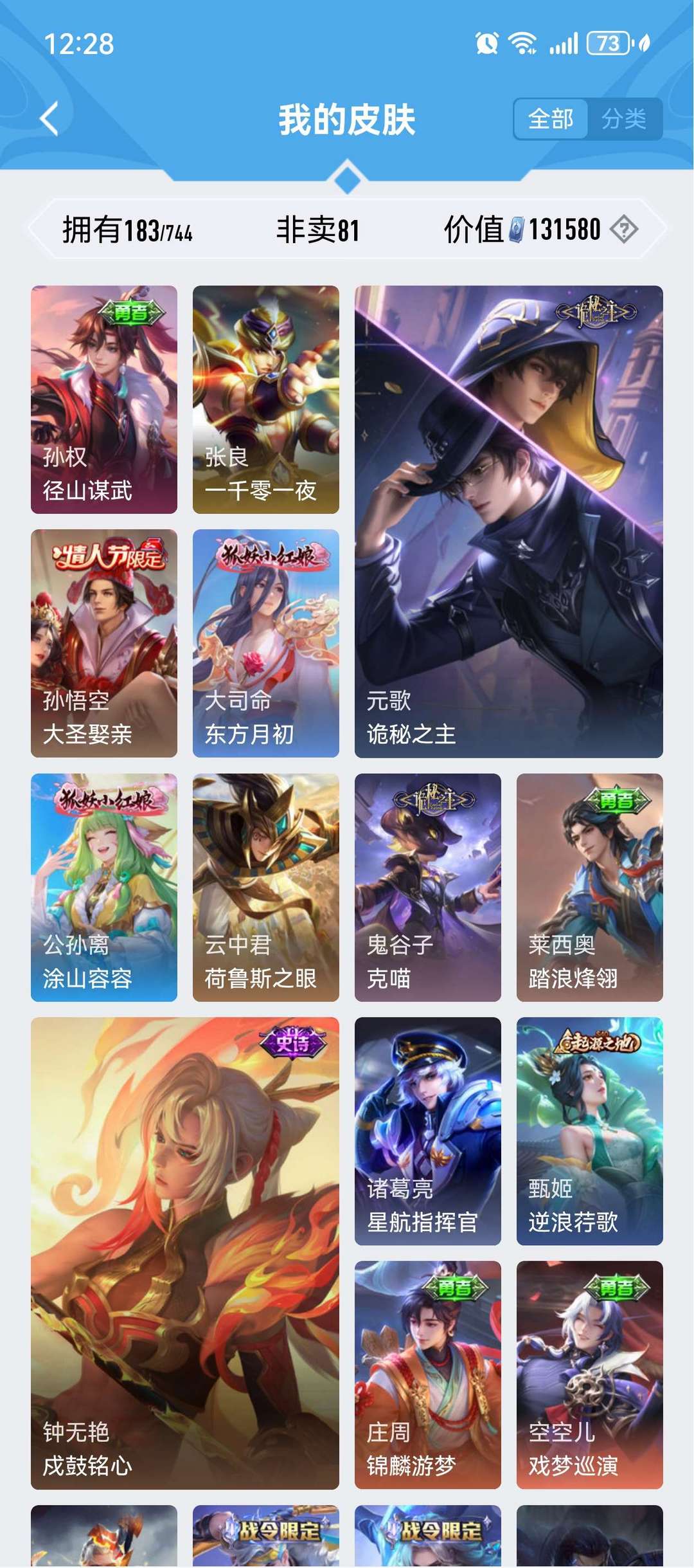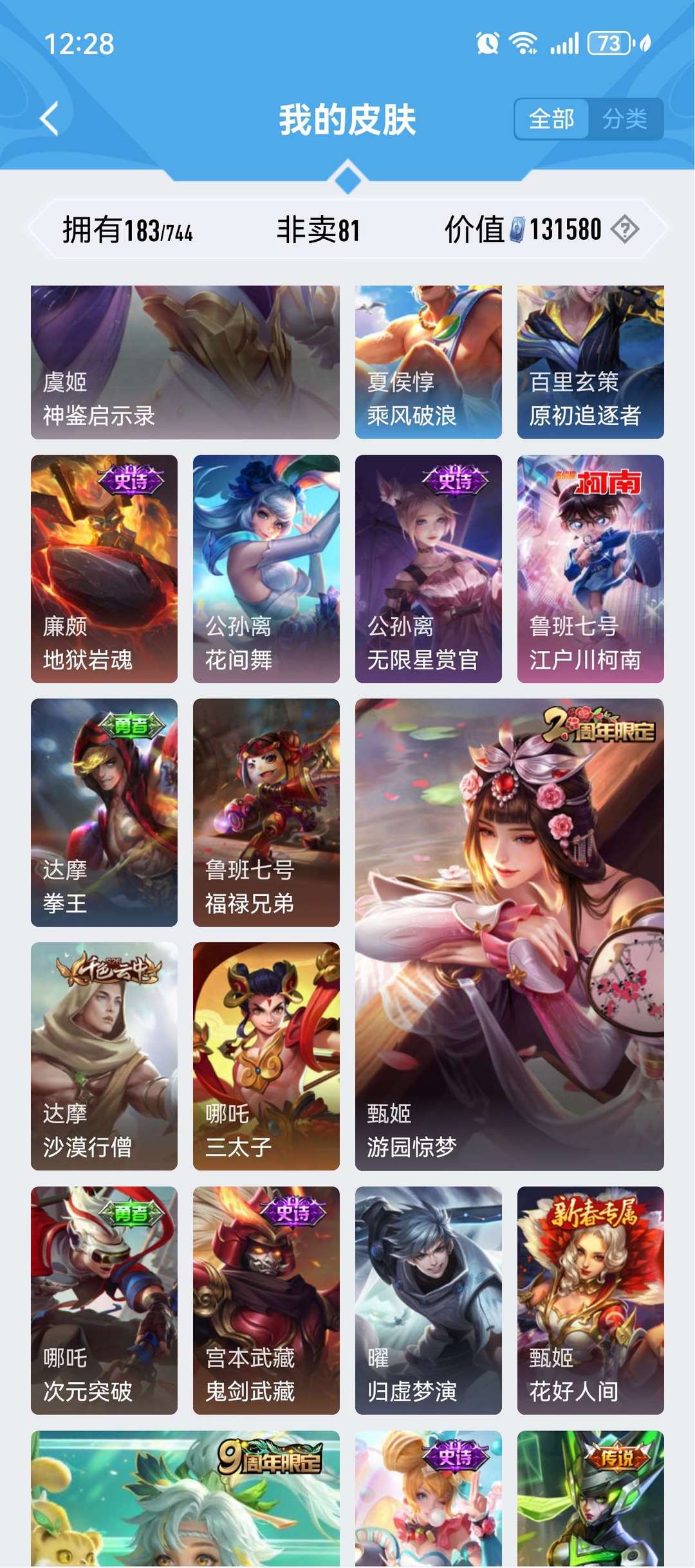 装备描述:珍品传说四个,孙策时之奇遇,马可波罗怪盗基德,鲁班柯南,安琪拉库罗米之心,荣耀典藏虞姬的神鉴启示录诡秘之主元歌等