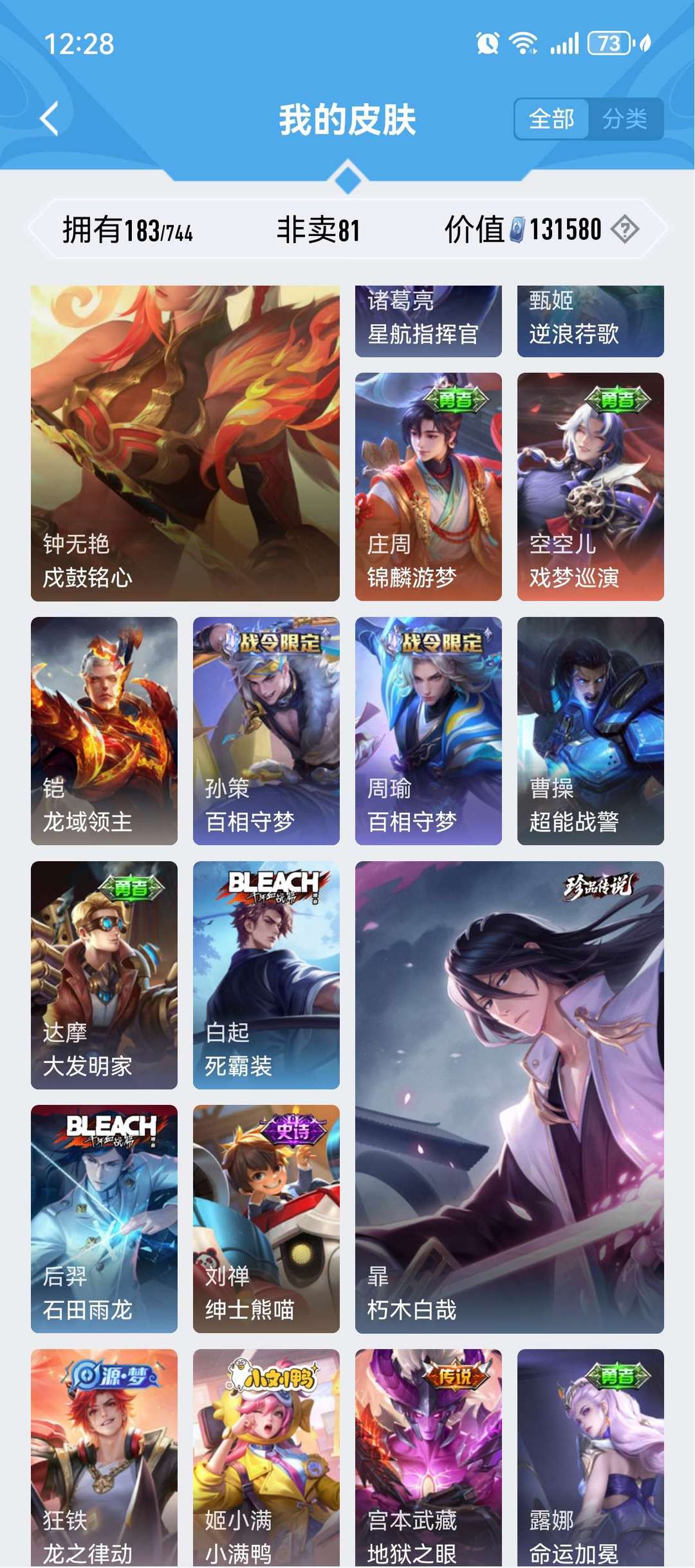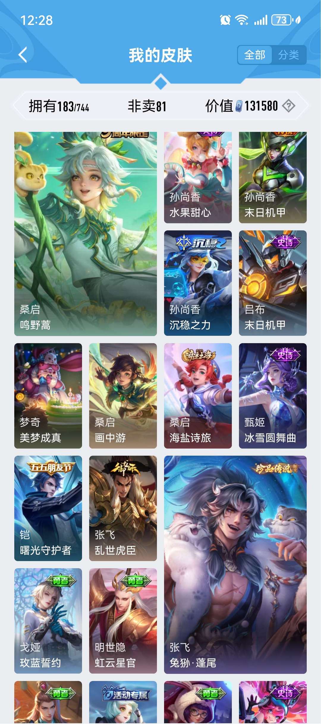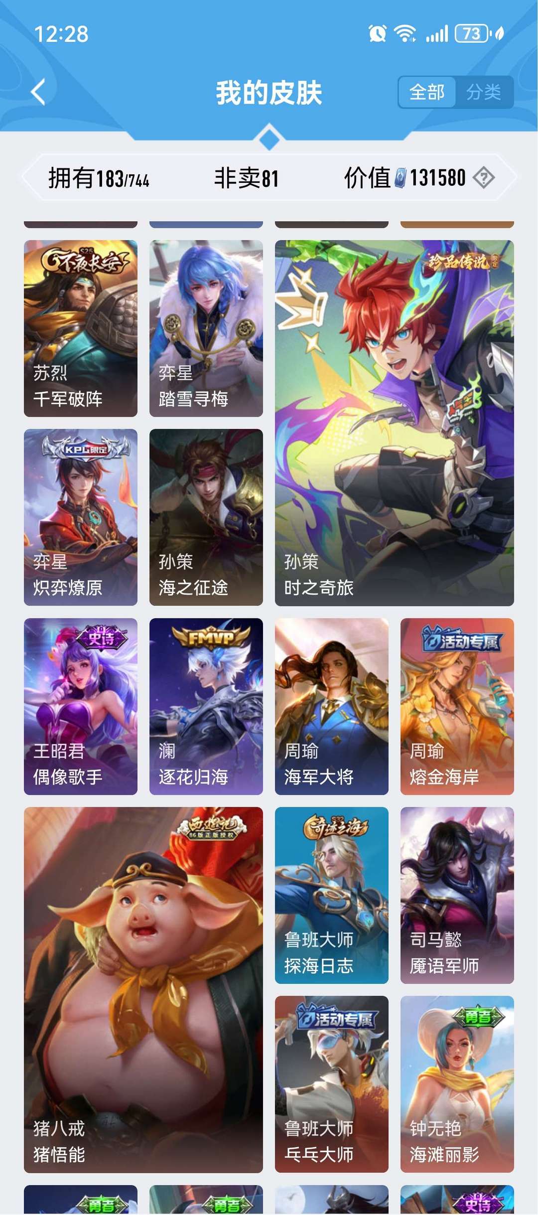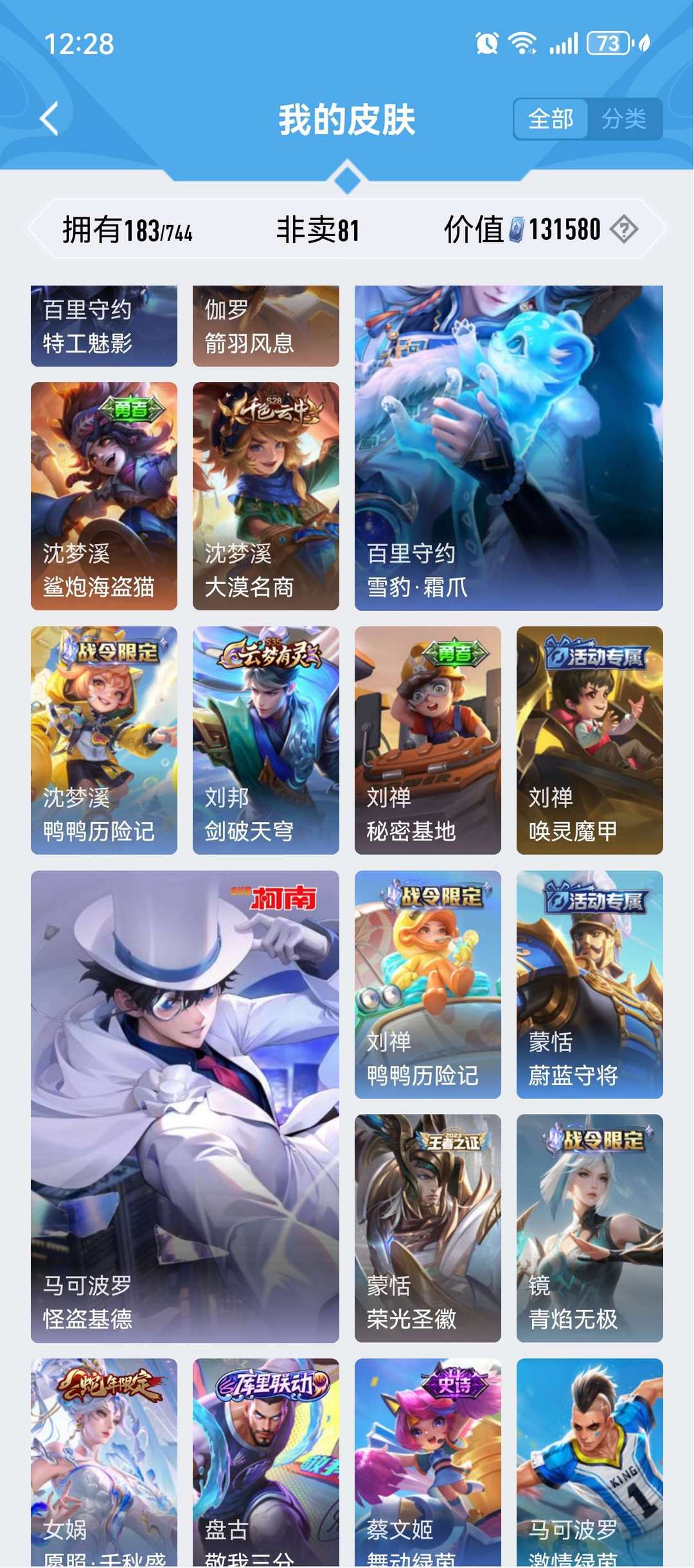 装备描述:珍品传说四个,孙策时之奇遇,马可波罗怪盗基德,鲁班柯南,安琪拉库罗米之心,荣耀典藏虞姬的神鉴启示录诡秘之主元歌等