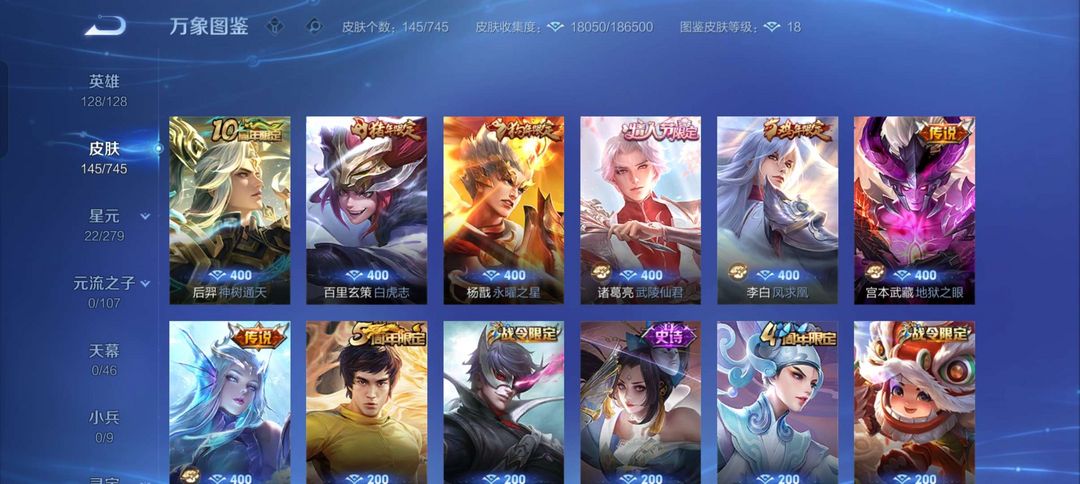 全英雄,皮肤很多老限定,好久没玩了,有啥自己看吧。