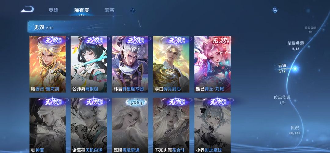 安卓q区 贵10热门6市标 490皮5水5无双(耀阿离韩信李白妲己)珍品嫦娥80传说多限定 6星传岁