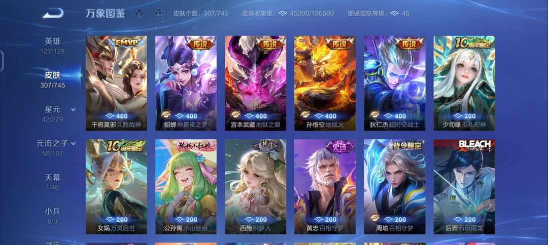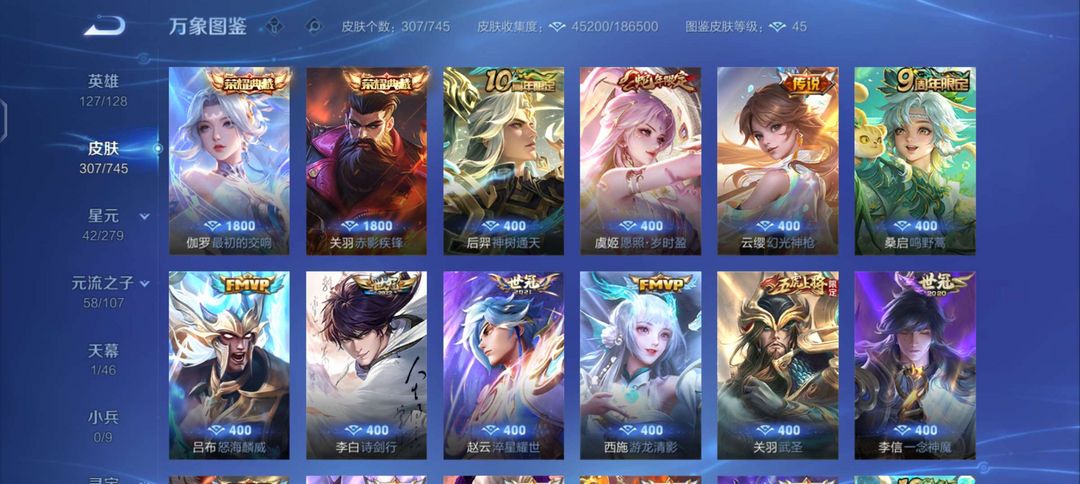 装备描述:127英雄,307个皮肤,铭文满级,也可玩排位