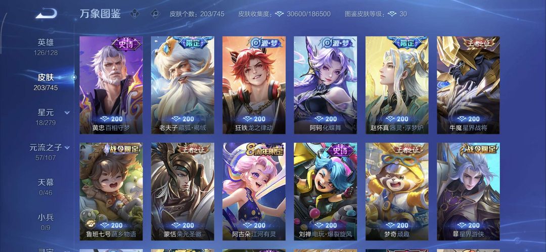 两个荣耀典藏,段位为荣耀王者,可打排位和巅峰赛